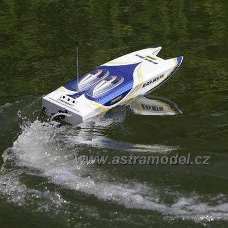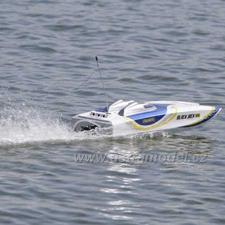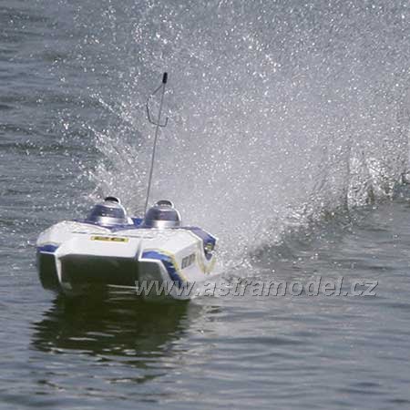 Sestavený loď se střídavým motorem, regulátorem a RC vybavením, vysílač 2,4GHz, stojánek na loď a návod. Neobsahuje baterie.