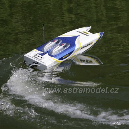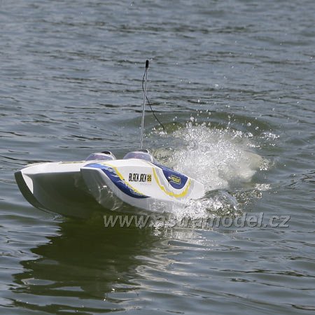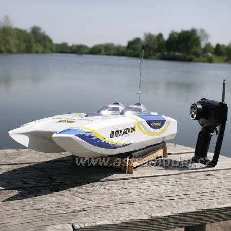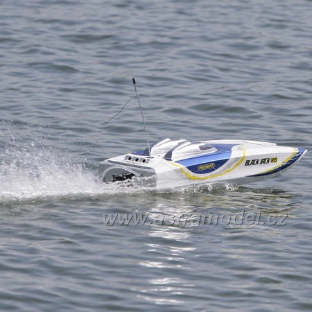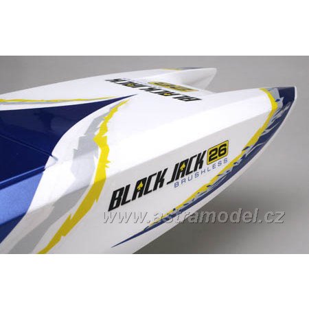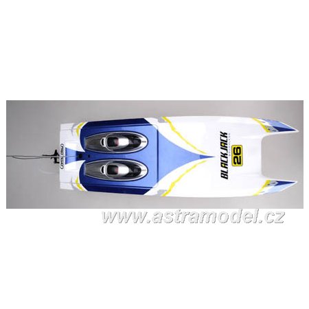 Blackjack 26 EP RTR s pohonem střídavým vodou chlazeným motorem. S neuvěřitelně vysokým výkonem a rychlostí vyrazí tento rychlík na hladinu a zanechá daleko za sebou všechny ostatní elektry. Je k nerozeznání od lodi se spalovacím motorem, výborně akceleruje ze zatáčky a má vysokou stabilitu.
