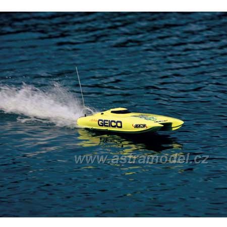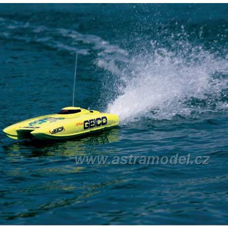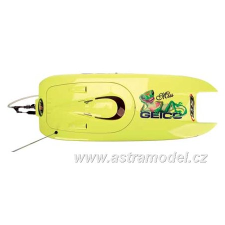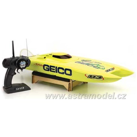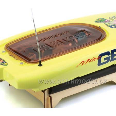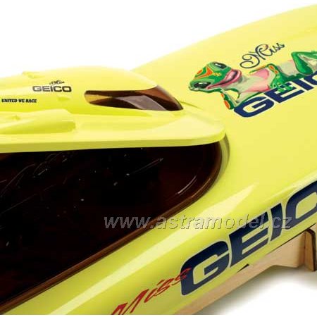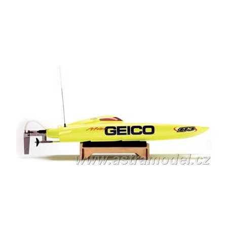Model závodního rychlostního člunu Miss Geico je spojením 2,4GHz technologie Spektrum, střídavého motoru s vodním chlazením, regulátoru s vodním chlazením a elegantního vzhledu. Je poháněn dvěmi sadami baterií 7,4V LiPol nebo 7,4NiMH/NiCd s konektory Deans pro extrémní přenos vysokého proudu. Pro maximální přenos výkonu je hřídel s lodním šroubem pevná s možností nastavení sklonu hřídele. Velké kormidlo zajistí dobrou stabilitu i obratnost.