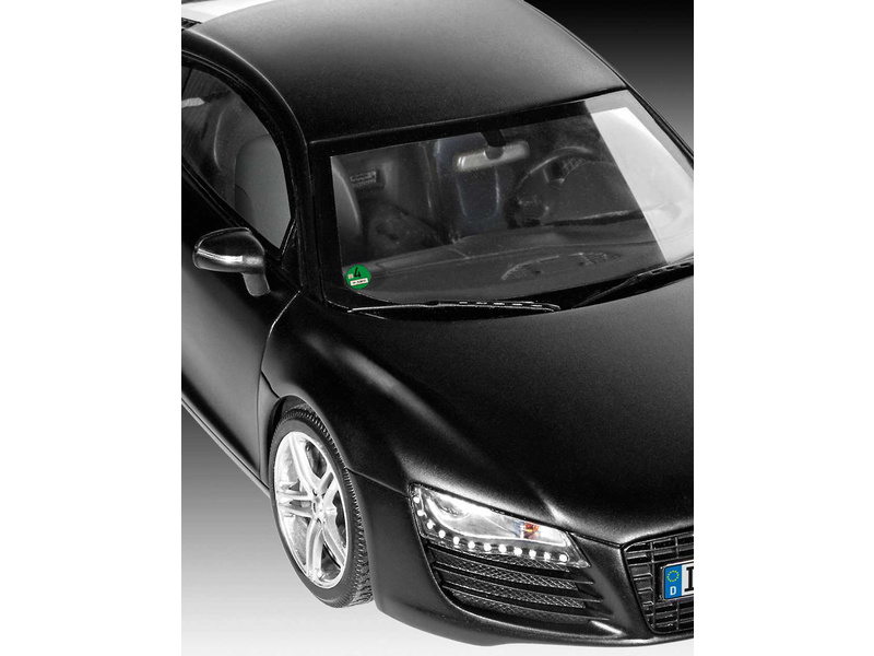Plastikový model Revell 67057 – auto Audi R8 v měřítku 1:24 ke slepení. Stavebnice obsahuje 106 dílků, délka 184 mm, obtížnost 3.
