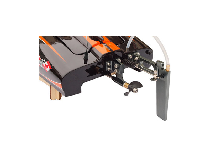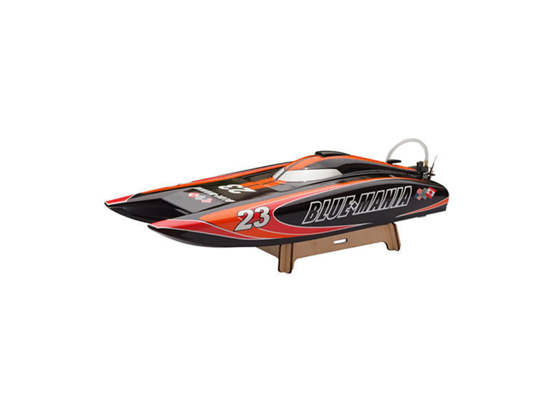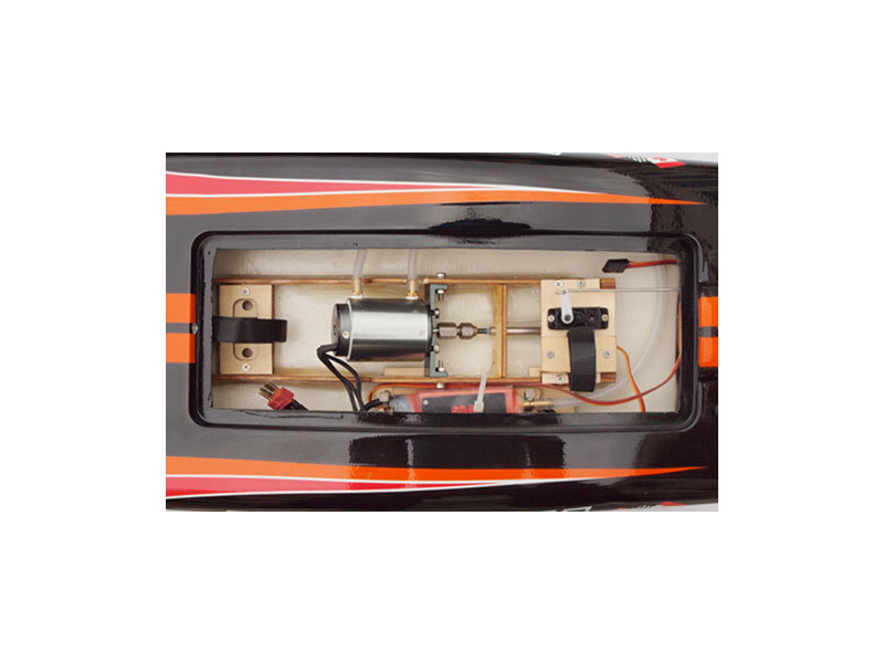 Rychlostní člun s laminátovým 560 mm dlouhým trupem, nainstalovaným střídavým motorem, regulátorem 60A a servem řízení. Dvoulistý lodní šroub, hliníkové směrové kormidlo, nerezové stabilizační plošky. Hotové zbarvení, loď je kompletně sestavena, stojánek je součástí balení.