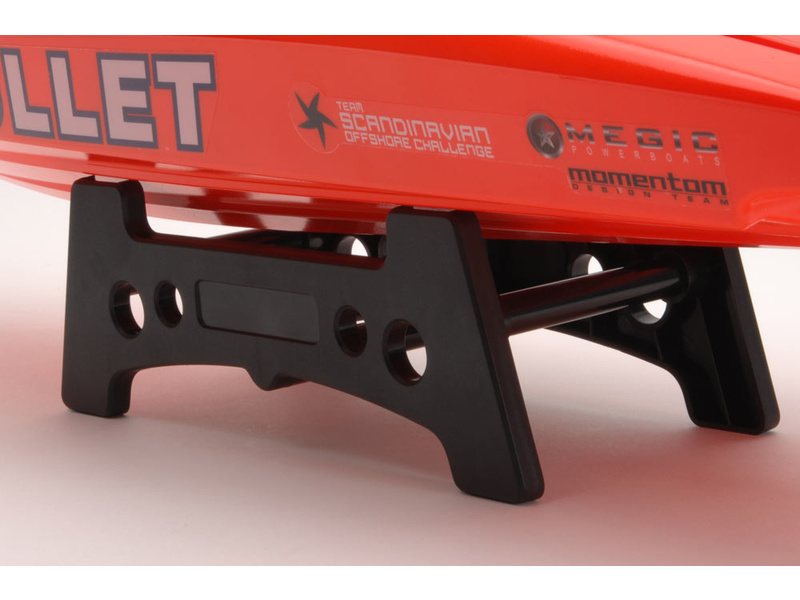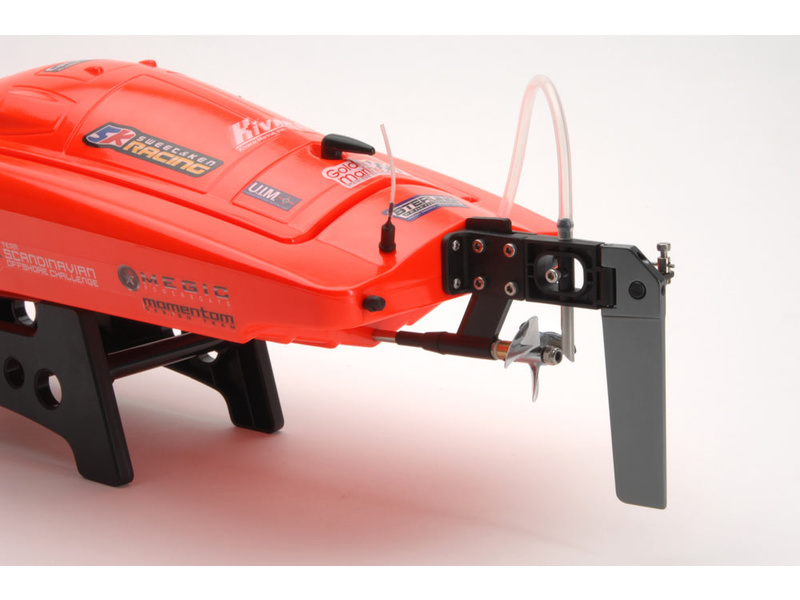 Hotový nabarvený trup má nainstalovaný přijímač, servo, regulátor, motor, hřídel motoru a držák kormidla. Sestavit je potřeba pouze lodní šroub a kormidlo. Nutno dokoupit pohonný LiPol akumulátor, nabíječ, 4AA baterie do vysílače.