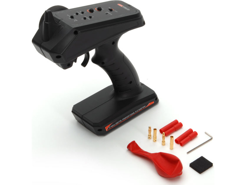 Vysílač je 2 kanálový 2,4GHz, má reverz kanálů, trimy, nastavení velikosti výchylek řízení a plynu.