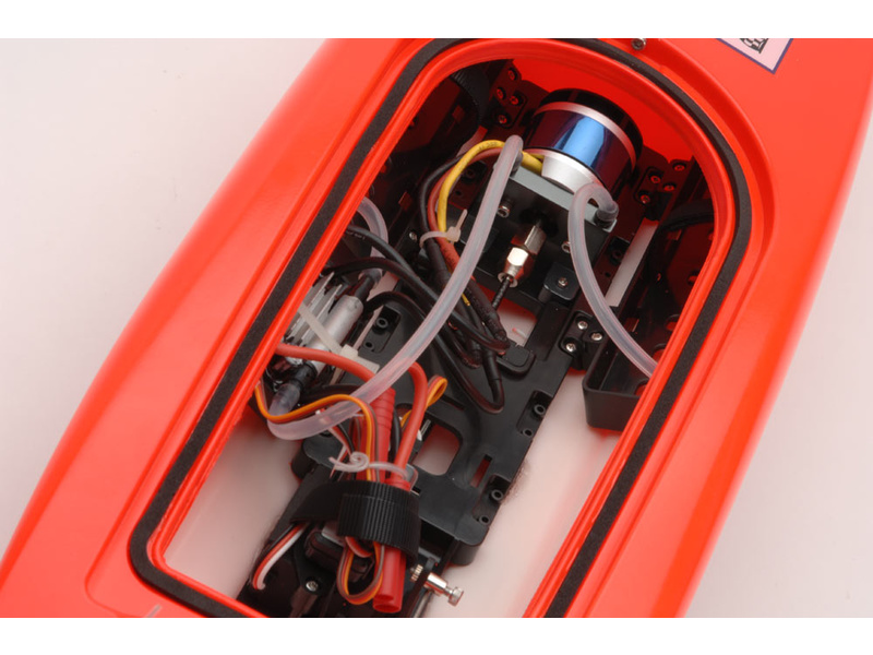 Trup je z kvalitního velmi tuhého plastu s efektní povrchovou úpravou. Lem vstupu do trupu je zatěsněn pěnovou gumou proti vniknutí vody, nástavba má dvojitou stěnu a zabrání potopení v případě převržení lodi. Je poutána k trupu šroubem. Uvnitř trupu se skrývá samostatný RC přijímač 2,4 GHz FHSS, vodou chlazený střídavý motor BL2815 s oběžným pláštěm a 60 A střídavý regulátor s vodním chlazením pro napájení 4 čl. LiPol 4000 mAh, kabel s konektory EC4 pro 2 ks 2 článkové baterie LiPol 2200 - 4000 mAh 35C (baterie nejsou součástí balení). O řízení se stará 37 g servo, které ovládá hliníkové eloxované kormidlo. Náhon je 4 mm ohebnou hřídelí 3-listým lodním šroubem.