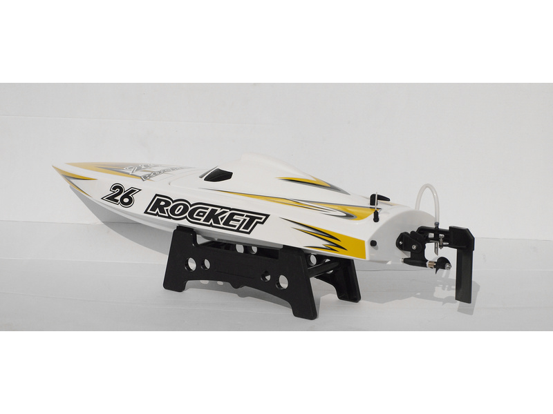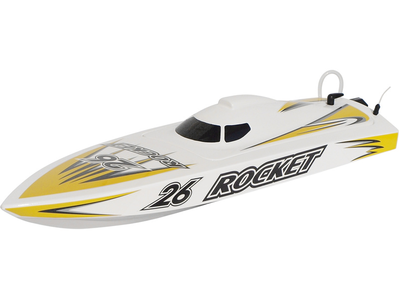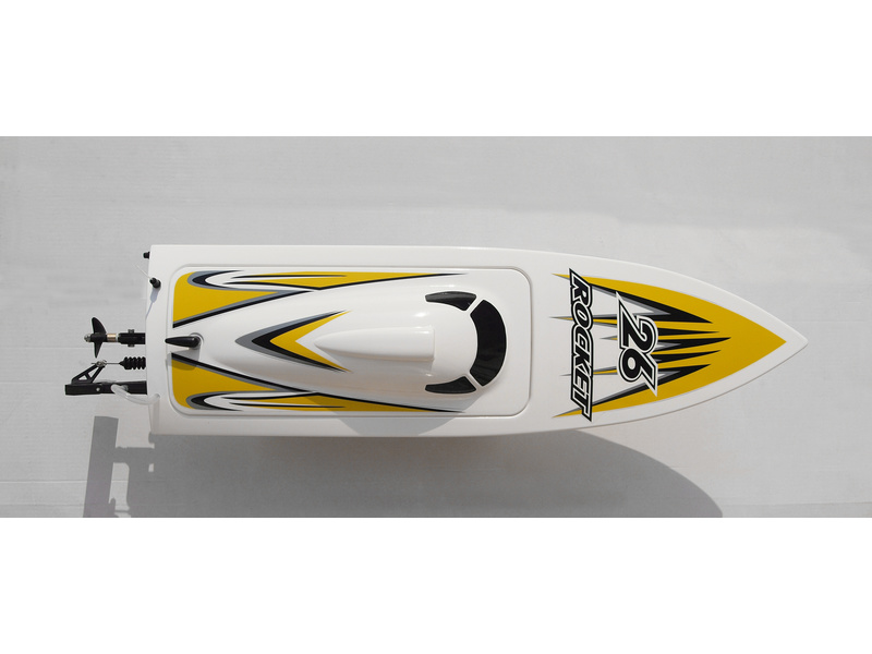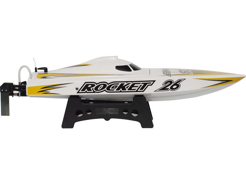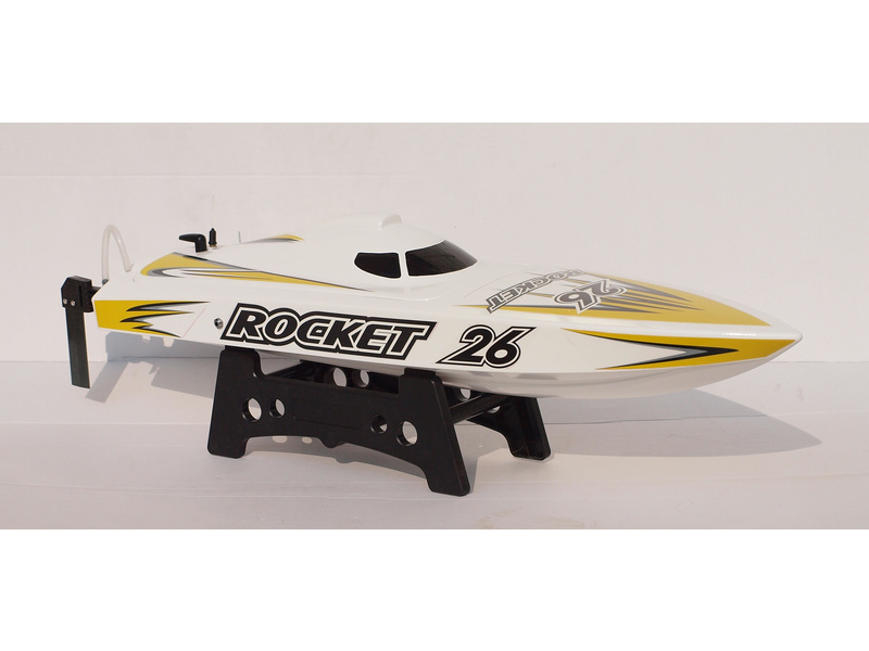 Výkonný rychlostní člun Rocket se střídavým motorem dokáže s LiPol akumulátorem 11.1 V (není obsažen v balení) jezdit rychlostí až 55 km/hod! Díky výkonnému vodou chlazenému motoru a bezpečnému řízení RC soupravou 2.4 GHz můžete vyrazit závodit na vodní hladinu.