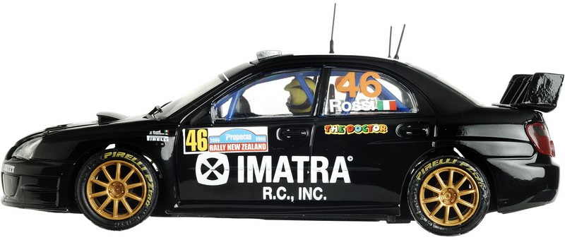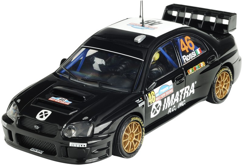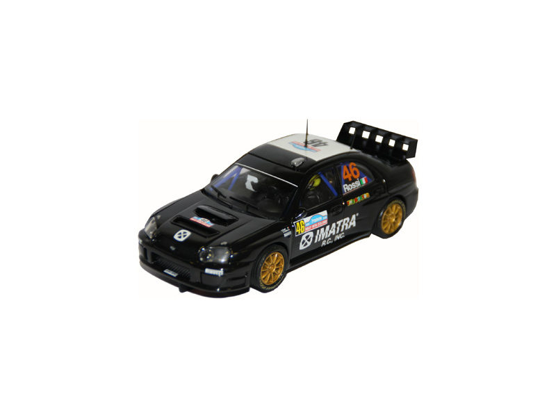 Dráhové autíčko rally Subaru Impreza WRC v měřítku 1:32 pro standardní autodráhu SCX. SCX Vám přináší tradiční japonské auto WRC s netradičním jezdcem - legendou motocyklových závodů Valentino Rossi. Pohon 4x4.