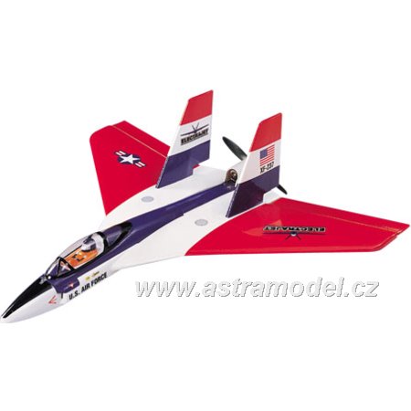 Rychlá delta s pohonem tlačnou vrtulí na motor 400, odolný pěnový materiál, rychlé sestavení, bez pohonné jednotky. Stavebnice obsahuje hotové nabarvené díly modelu, kabinu, výlisky kokpitu a pilota, montážní příslušenství a obtisky.
