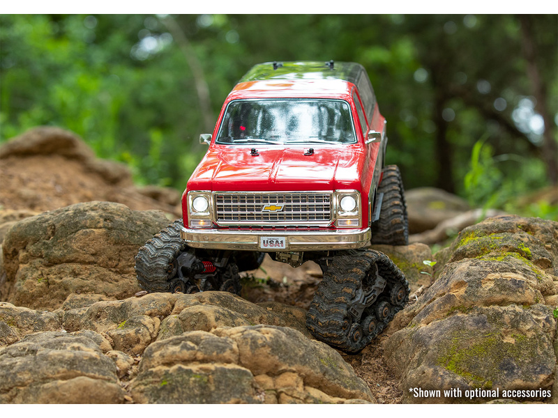 Expediční RC model auta TRX-4 Chevrolet K10 1979 s vyšší světlou výškou, většími 2.2" koly, delším rozvorem a úžasnou bez-sponkovou karoserií. Spousta chromovaných prvků, portálové nápravy, dálkově řízená převodovka a uzávěrky diferenciálů.