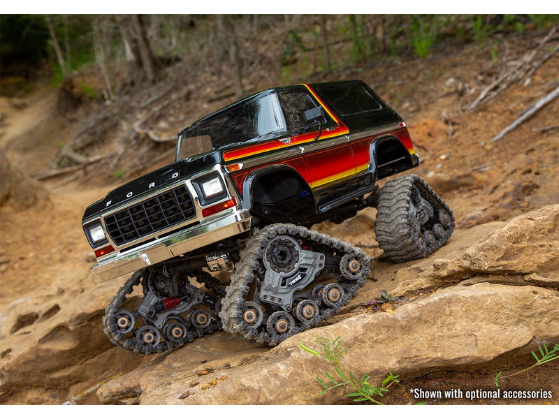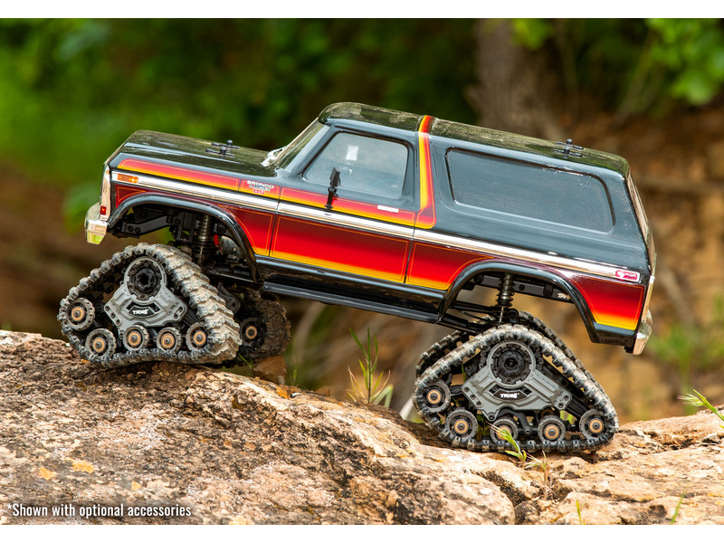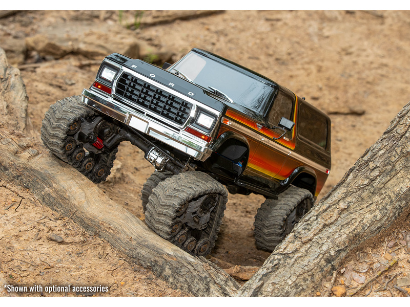 TRX-4 Ford Bronco je modelem skutečného vozu. Autentická chromová kola, nárazníky, postranní lišty, zrcátka a mřížka chladiče, to vše dává Fordu Bronco klasický vzhled ze 70 let. Karoserie Sunset nebo červená. Náhon 4WD, portálové nápravy s převodovkou a uzávěrky diferenciálů.