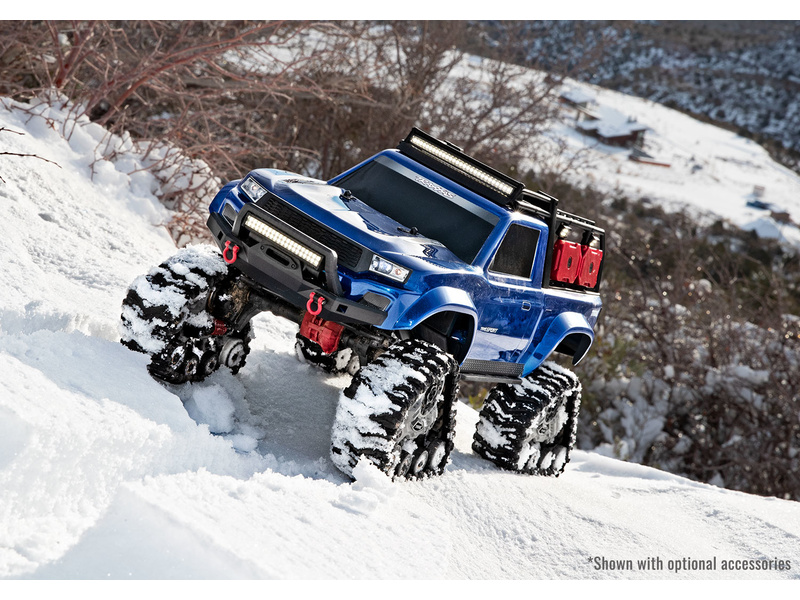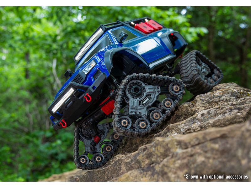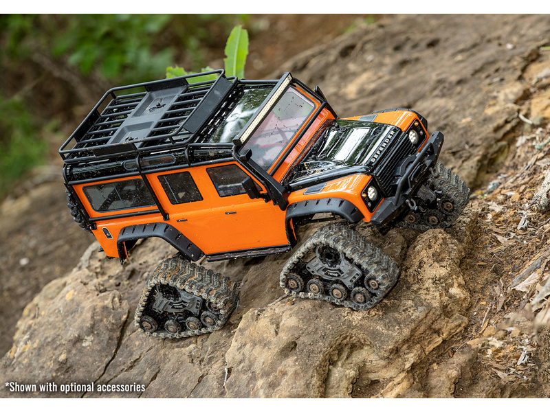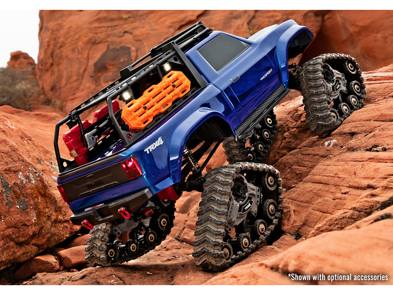 Traxxas TRX-4 Traxx 1:10 RTR - špičkově vybavený, expediční RC model auta. Pásový podvozek pro perfektní průchodnost terénem, instalované LED osvětlení, střešní nosič s věrnými doplňky. Detailní zpracování karoserie na legendárním podvozku TRX-4, s portálovými nápravami.