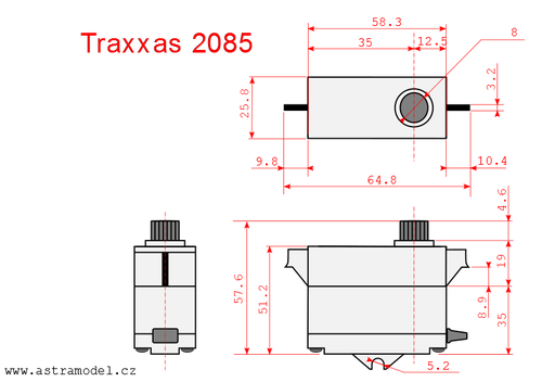 Tuningové verze položky k Traxxas servo 2085 voděodolné* 26kg.cm 0.16s/60° 25T