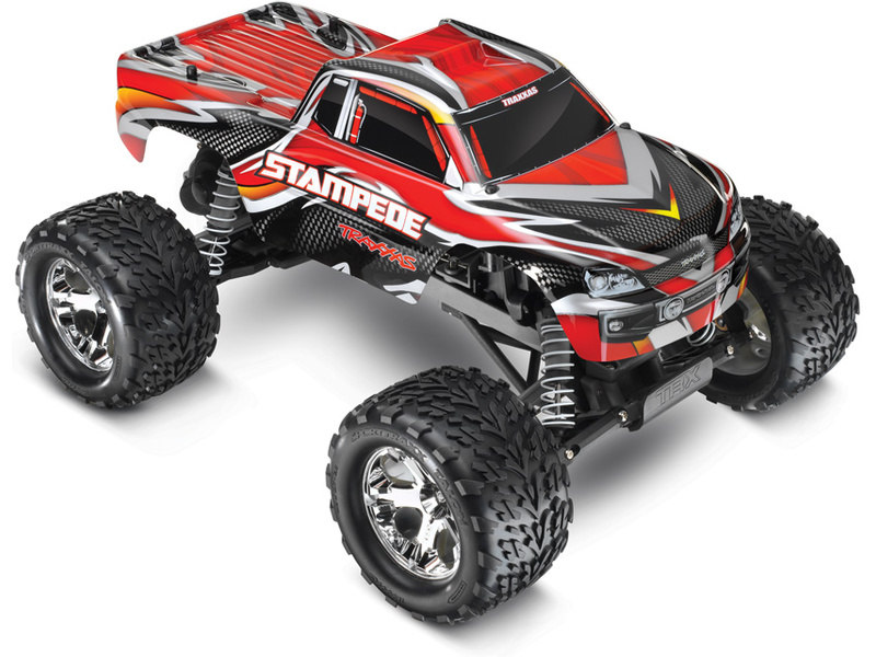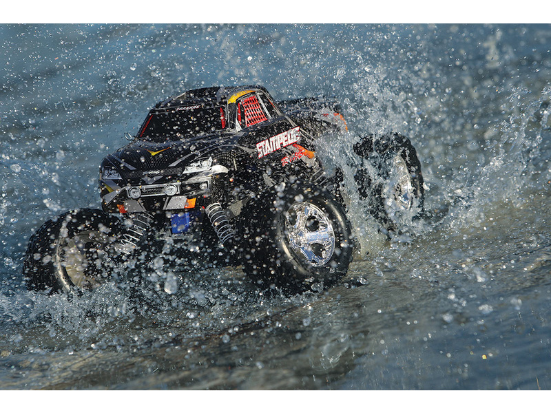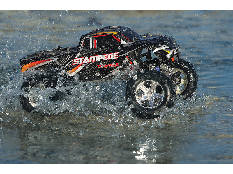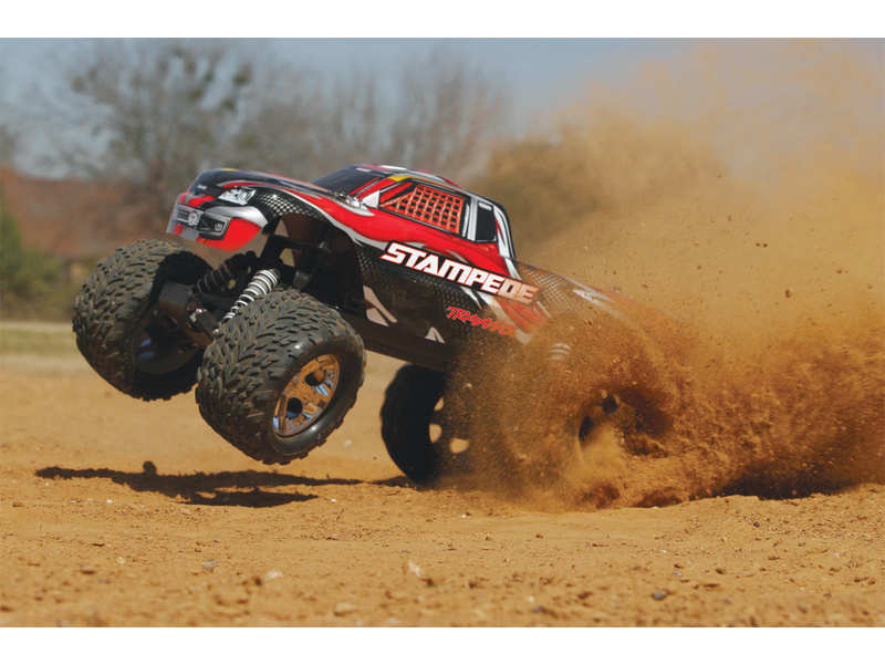 RC model auta Traxxas Stampede VXL v měřítku 1:10, s náhonem 4x4, nadrozměrným střídavým motorem 540XL, regulátorem VXL-3S, dosáhne rychlosti až 96 km/h. Elektronická stabilizace jízdy. Komponenty pro vysokou odolnost - Extreme Heavy Duty, bezsponková karoserie a pneu Sledgehammer.