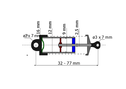 Traxxas tlumič GTS - prodloužený pro sadu vyššího zdvihu (4 ks). Sestavený, neobsahuje pružinu.