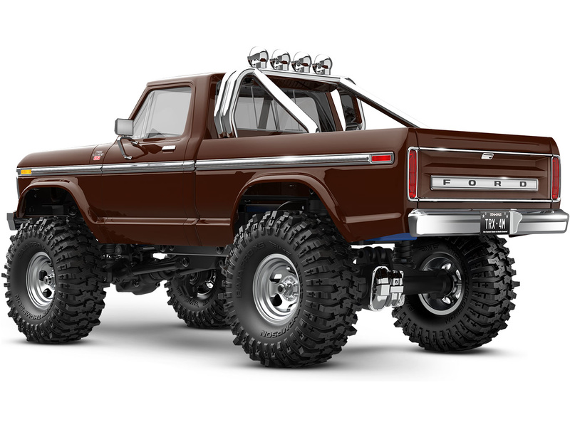 Traxxas karosérie Ford F-150 1979 hnědá, pro RC model auta TRX-4M s delším rozvorem 162 mm (High Trail). Bez-sponková karoserie v měřítku 1:18 z ABS, kompletní, včetně mřížky chladiče, zrcátek, klik dveří, ochranného rámu, stěračů, bočních lišt a dalších detailů.