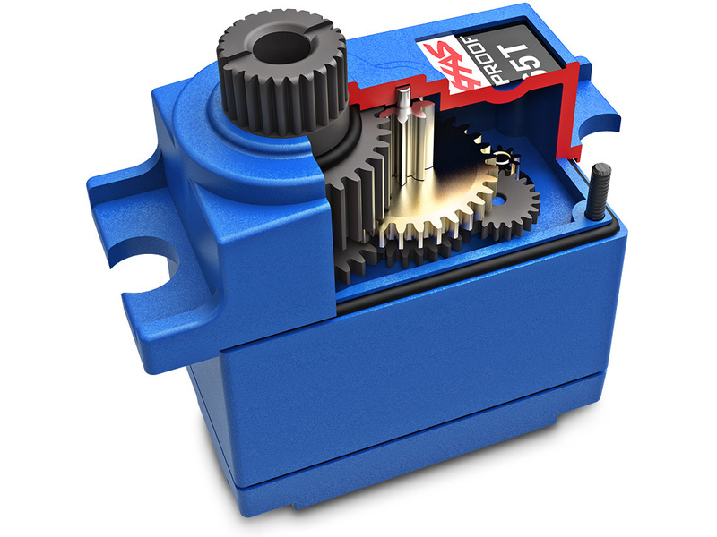 Mikro servo Traxxas 2065T. Nylonové převody s hlavním prostředním kovovým ozubeným kolem. Moment 2.5 kg.cm, rychlost 0.20 s/60° při 6.0 V. Rozměr 12.8 x 22.8 x 23.0 mm. Hmotnost 11 g. Zvýšená odolnost proti vodě.