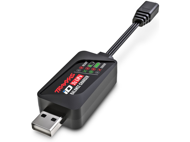 Traxxas nabíječ USB. Nabíjecí proud až 2A. Konektor baterie Traxxas iD pro baterie #2821 (2S LiPo 750 mAh). Napájení z libovolného USB-A výstupu. Náhradní díl pro RC modely auta Traxxas TRX-4M.