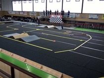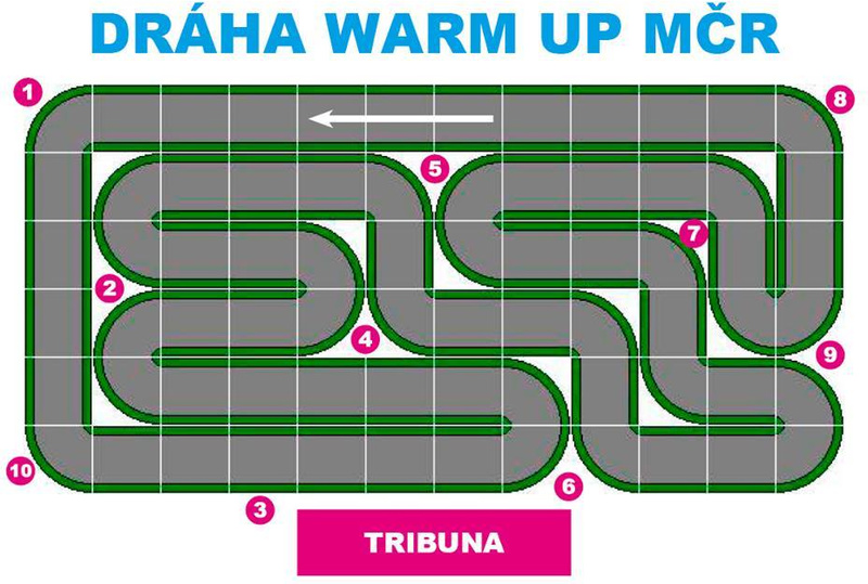 Prvotní dojem z nákresu trati, který olomoucký klub zveřejnil na svých FB stránkách, byl poněkud rozpačitý. Skoro to vypadalo, že se někdo vsadil, kolik se vejde 180ti stupňových zatáček na plochu 30x15 metrů. To naznačovalo, že trať nebude nijak rychlá a šíře stopy 2,5m neposkytne příliš prostoru pro chyby ani pro předjíždění. Nicméně reálná podoba trati dostála jistých změn a to k dobru věci.