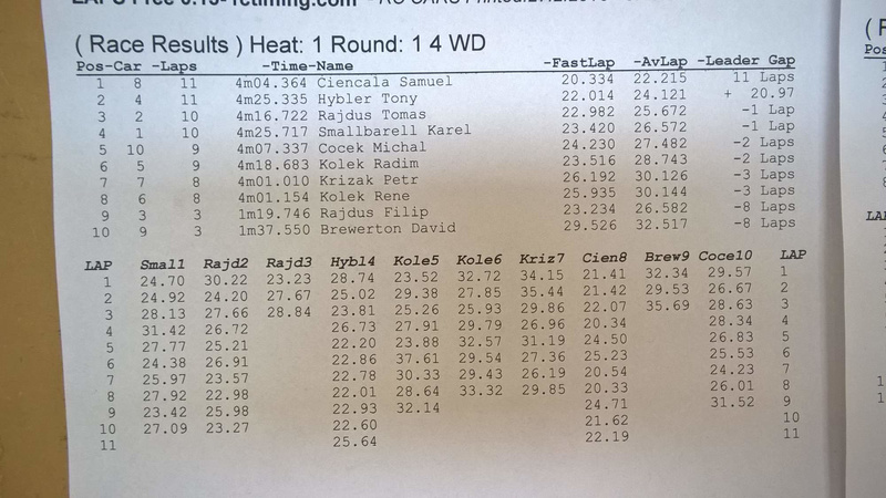 Za zmínku stojí také výkon Davidova mladšího bratra Václava, který se stejnou technikou - tedy TLR 22, statečně proháněl ve finále C zkušené matadory a dojel jako šestý. v této finálové skupině.