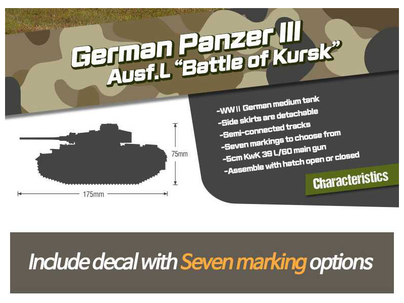 Plastic model Academy 13545 - tank Panzer III Ausf.L "Battle of Kursk" in scale 1:35 to glue. Length 175 mm, difficulty 4.