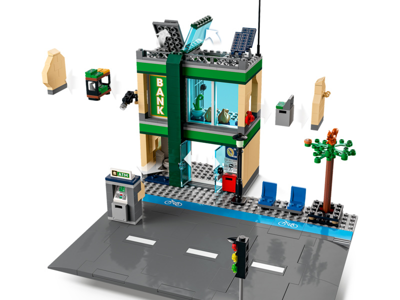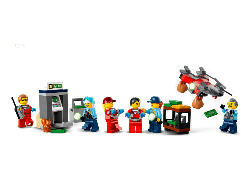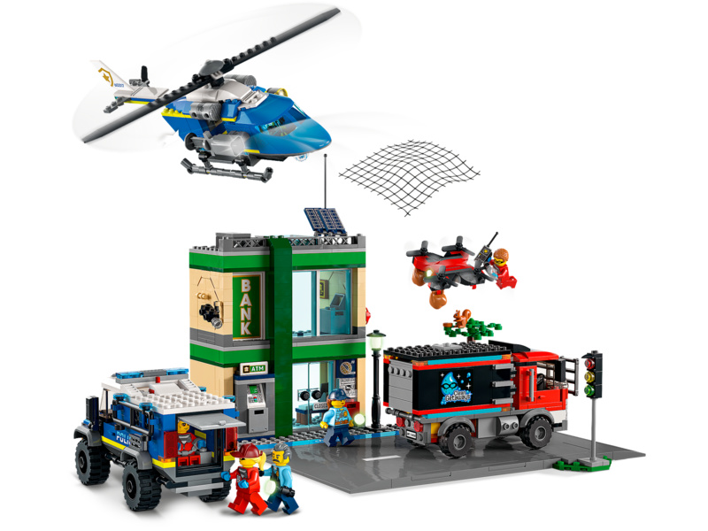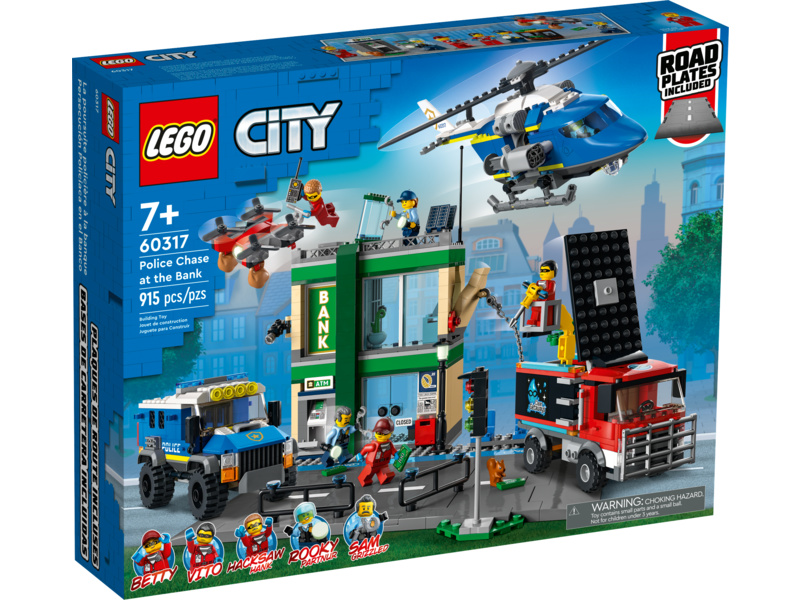 Endless action awaits with this LEGO® City Police Chase at the Bank (60317) playset, featuring a function-packed bank building, a cleaner’s truck that folds out into a crooks’ heist vehicle, a police helicopter, police truck and 6 minifigures, including 5 popular characters from the popular LEGO City Adventures TV series, plus a Road Plate system for connection to other LEGO playsets.