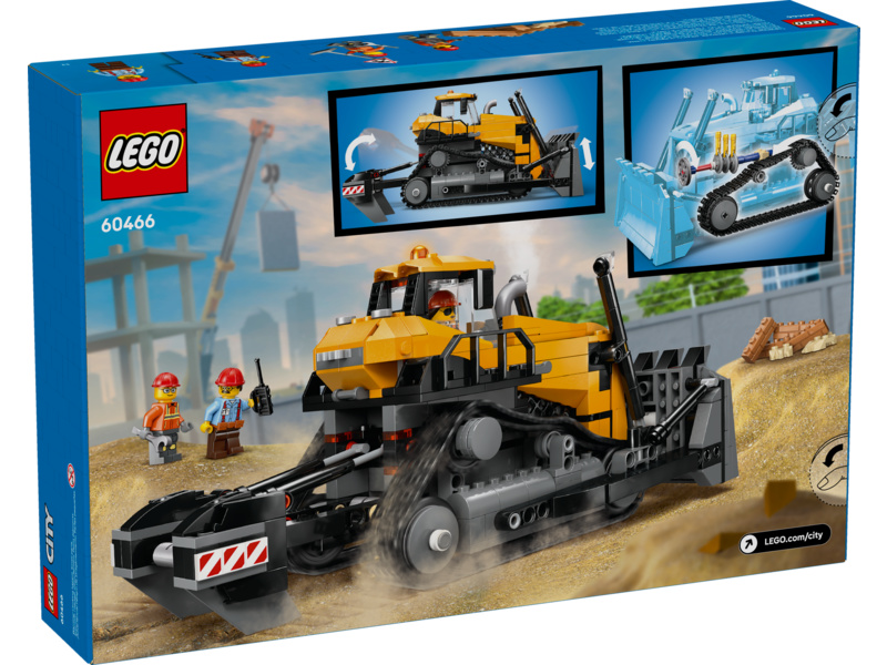Fuel kids’ fascination for cool construction site vehicles with this LEGO® City Yellow Bulldozer building toy (60466) for ages 8 and over. This impressive model is packed with realistic features and functions, including a raisable front blade and rear dual-shank ripper, plus a detailed engine with visible moving pistons and a spinning cooler fan. The set also includes a construction sign and comes with a driver and 2 worker minifigures for imaginative play.