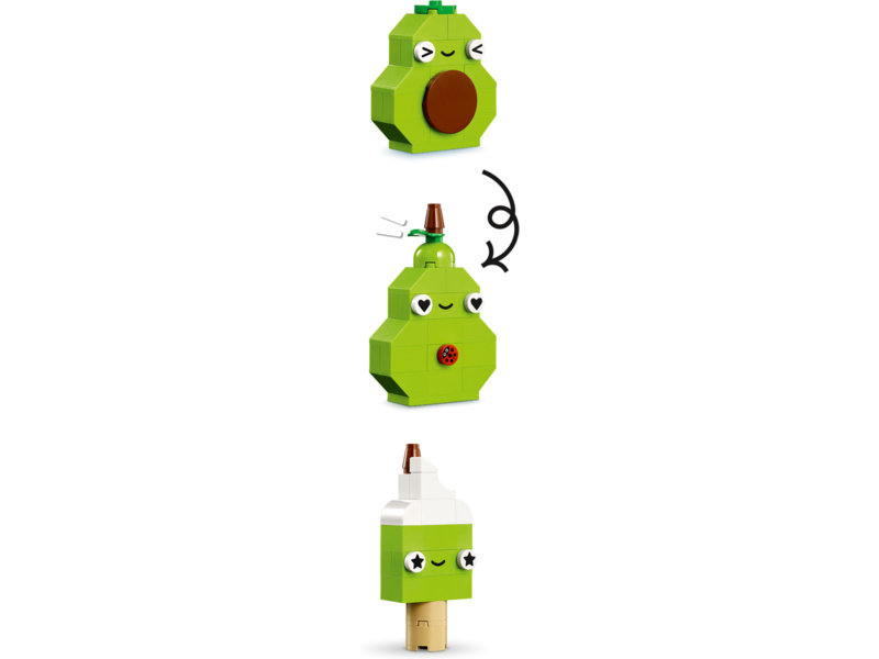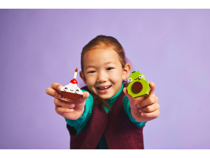 Kids use the colorful and captivating assortment of building bricks and special pieces – such as eyes, mouths and various decorative elements – to build 4 cute Food Friend toys: a cupcake, ice cream, avocado and taco. The creative fun continues as kids mix the bricks to rebuild the models into a cake with sprinkles, bubble-tea drink, pear and a panini. As kids become more confident in their building skills, they can follow the intuitive building guide to change expressions, shapes or colors to create new Food Friends, including a green ice cream, juice carton, slice of watermelon, chocolate bar and a mega sandwich.