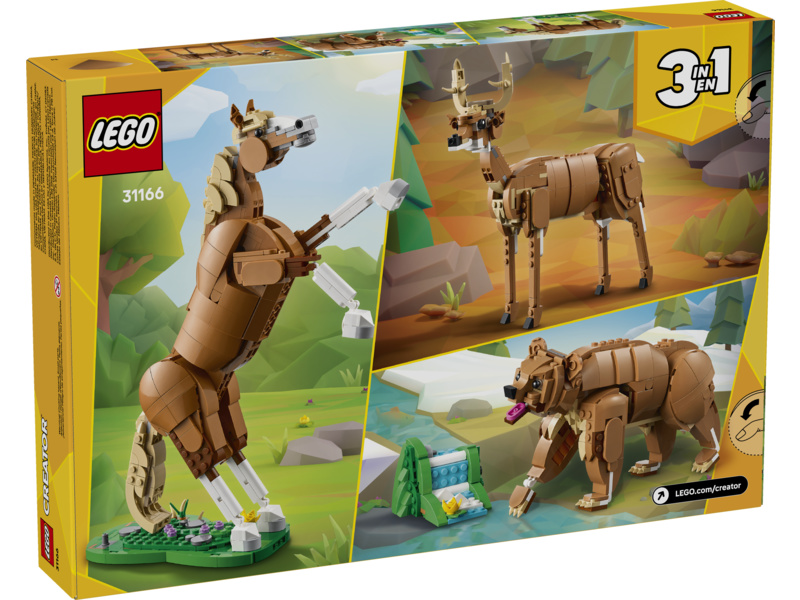 Kids have 3 different building options with the same set of bricks: a posable LEGO® horse toy; a posable bear toy with a small waterfall build; or a posable elegant deer toy. All 3 animal figures in this transforming toy set make creative and fun gifts for kids.