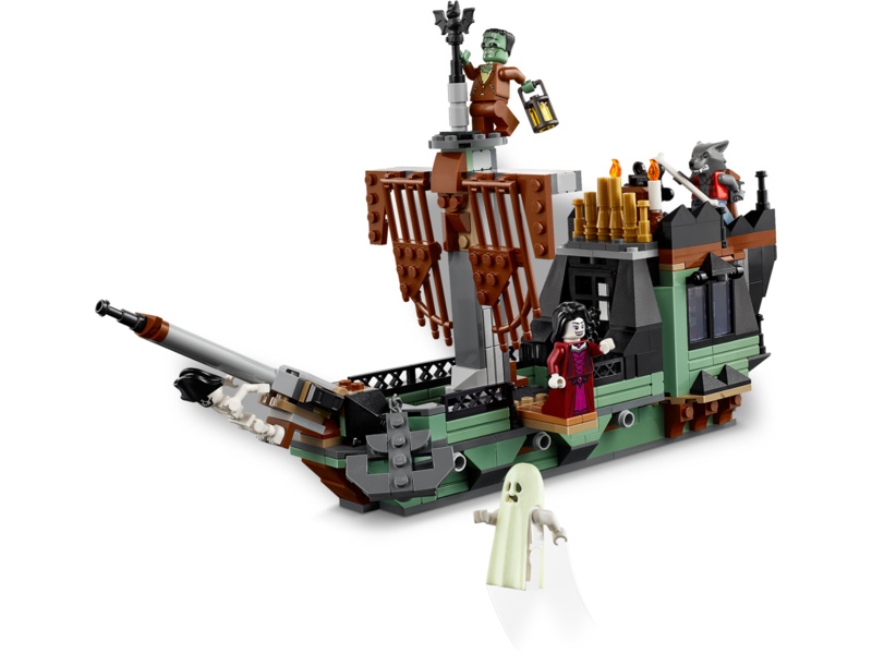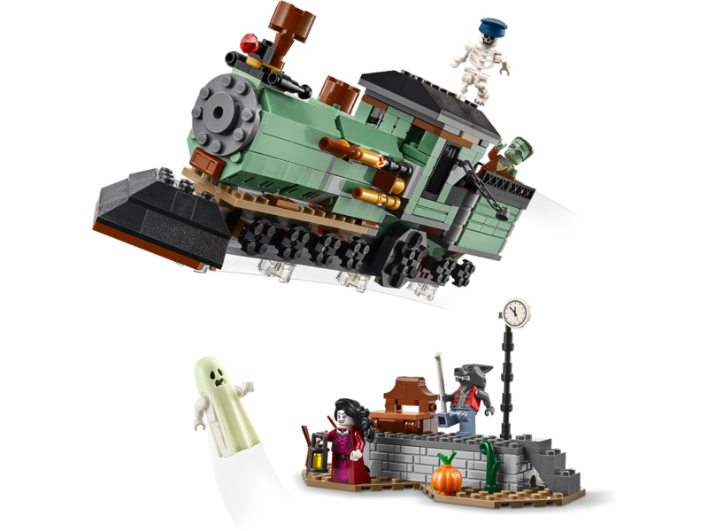 Boys and girls aged 9 plus enjoy 3 building options with the same bricks: an interactive haunted house, a haunted ship toy or a haunted train set with a platform. Each playset comes with 5 minifigure characters: a werewolf, vampire, ghost with a glow-in-the-dark cape, Frankenstein’s monster and a skeleton.