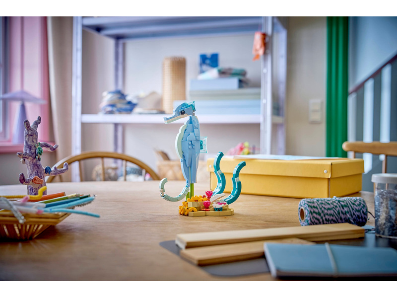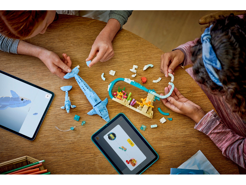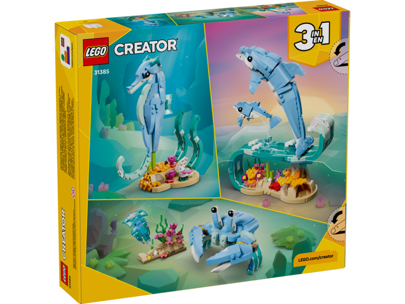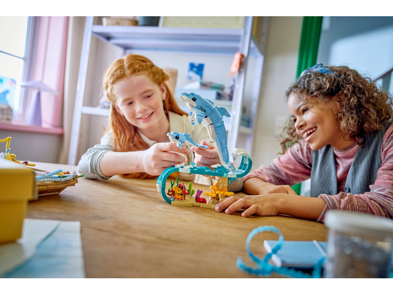 LEGO® Creator 3 in 1 Sea Animals: Beautiful Dolphins (31385) building set lets kids ages 9 and up play out fun-filled stories. This sea animal figures playset for girls and boys offers 3 different building options with the same set of bricks. Theycan choose to build a dynamic model of an adult and baby dolphin with posable features riding a cresting wave above coral. This can then be rebuilt into a posable seahorse on a colorful stand featuring seaweed and a posable clam, or a crab next to sea plants and a jellyfish. Once playtime is over, each beautiful model can be proudly displayed as beautiful nature decor on a shelf or desk. This LEGO Creator 3 in 1 set will inspire young imaginations and makes a great gift idea for kids who love sea animals. They can build each playset with confidence using the LEGO Builder app – zoom, rotate in 3D and track progress with easy-to-follow digital instructions. Please note models cannot be built simultaneously. Set contains 542 pieces.