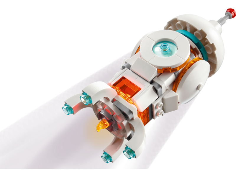 LEGO fans build and rebuild 3 different action-packed space playsets with the same bricks: a robot toy on moving tracks; a posable space dog figure with a bone and a flying disc; or a space rocket. All 3 models are cool space-themed gifts for play and display and illuminate when kids press down on a light brick (batteries included).
