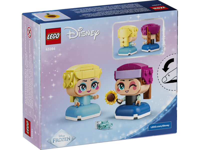Treat kids ages 5 years old and up to this LEGO® ǀ Disney Frozen Mini Anna & Elsa (43284) Frozen toy building set. The small Elsa and Anna movie characters are designed to spark storytelling and play, with the included ice bolt and sunflower accessories. Each character has movable arms and can hold an accessory. They are also perfect for a cute display and are part of a larger collectible series that includes other brick-built Disney Princess character toys. Fulfill a child’s love for Disney’sFrozen with a building toy that makes a fun birthday or anytime mini gift-giving idea for girls and boys and works with other LEGO ǀ Disney building sets (sold separately). Kids also get an easy, intuitive building adventure on the LEGO Builder appfor zooming and rotating with 3D instructions, and saving and tracking progress. Contains 65 pieces.