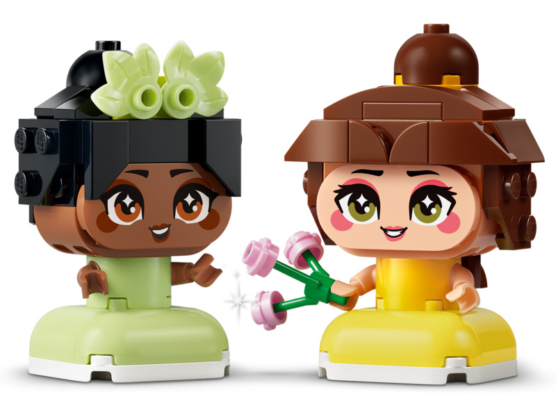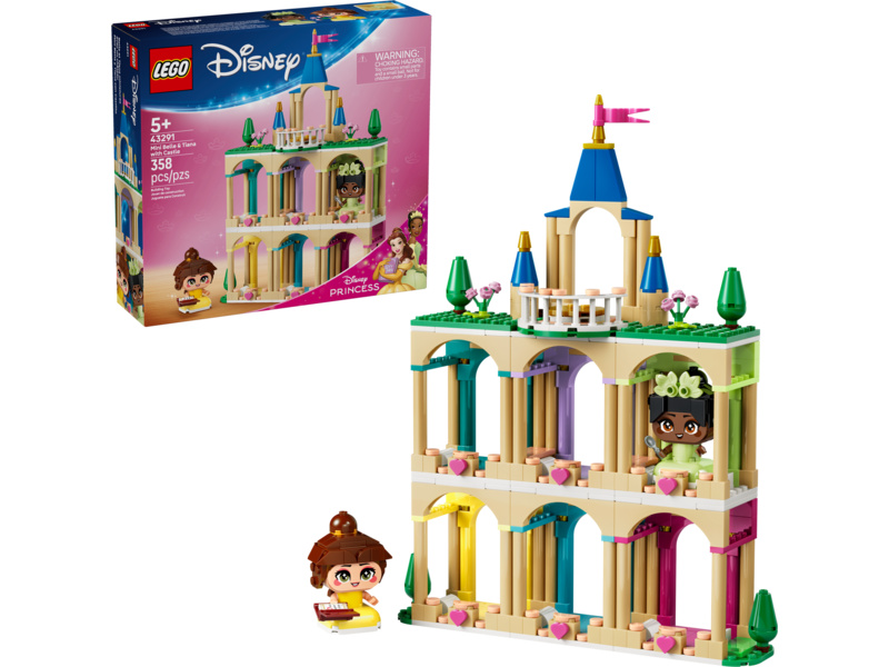 Share a love for Disney Princess characters with fans ages 5 years old and up and this LEGO® ǀ Disney Princess Mini Belle & Tiana with Castle (43291) toy building playset. The small Belle and Tiana movie characters help inspire storytelling play with the included book and spoon accessories. Each character has movable arms and can hold an accessory. The buildable castle playset features 3 levels and includes color-coordinated spaces for each character in the collectible series. The center tower has a spinning turntable to display any of the characters in the series. Fulfill a child’s love for Disney Princess play with a building toy that makes a great birthday or holiday gift-giving idea for girls and boys. The brick-built set works with other LEGO ǀ Disney building sets, all sold separately. Kids also get an easy, intuitive building adventure on the LEGO Builder app for zooming and rotating with 3D instructions, saving and tracking progress. Contains 358 pieces.