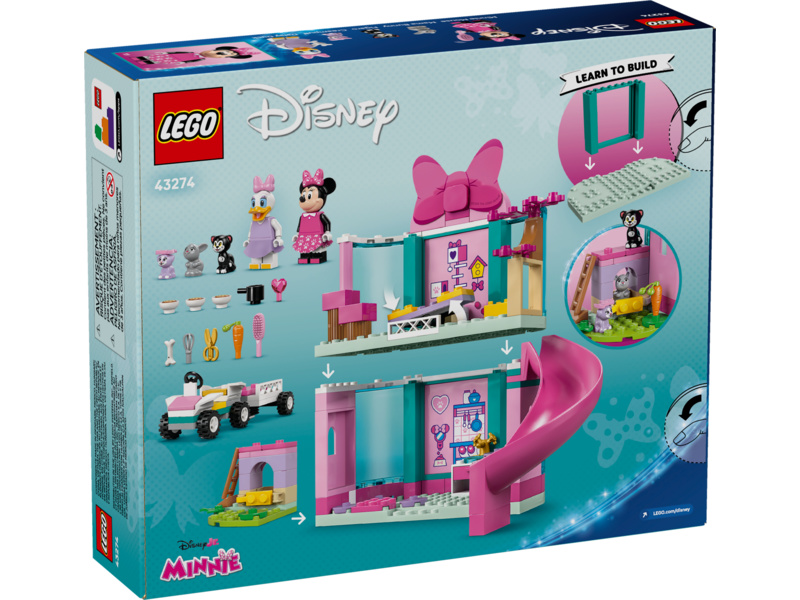 Fans of Disney’s Mickey Mouse Clubhouse aged 4 years old and up can embrace nurturing play as they learn to build with this LEGO® ǀ Disney Minnie’s Pet Hotel (43274) building set. The small kids’ buildable gift-giving idea has a 2-level hotel with a slide, play kitchen and bunny hutch, a car with a small trailer and lots more. It includes Minnie Mouse and Daisy Duck LEGO ǀ Disney minifigures, plus Figaro, Creampuff and Mama Bunny LEGO ǀ Disney pet characters.