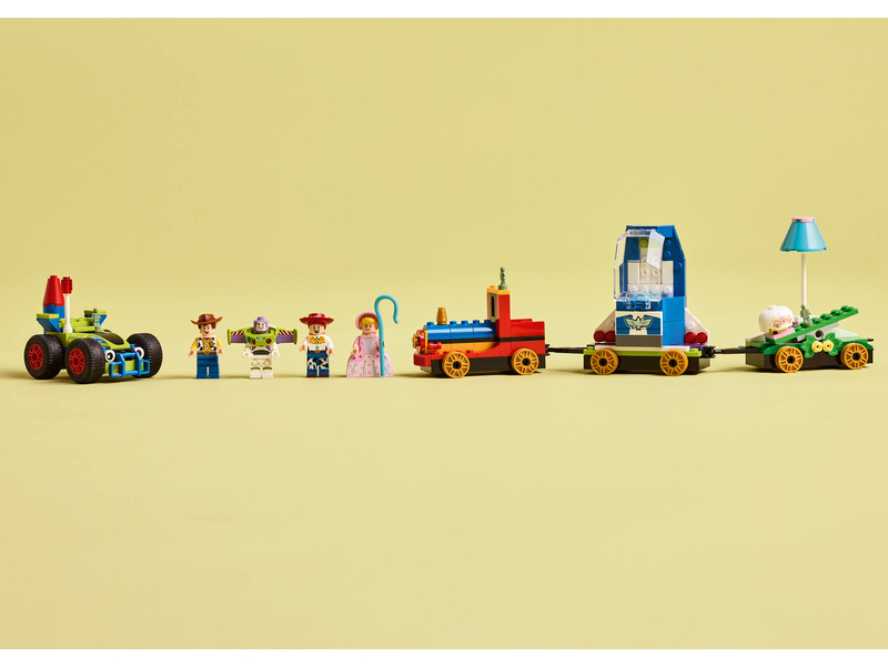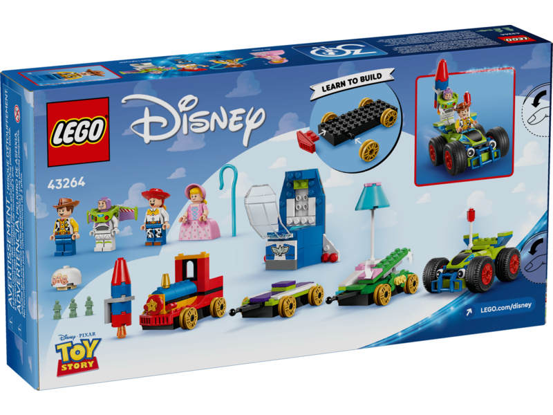 Kids aged 4 years old and up who love vehicles and trains will find all that and more in this Toy Story Celebration Train & RC Car (43264) LEGO® ǀ Disney building set. Children learn to build as they celebrate the 30th anniversary of Disney and Pixar’s hit Toy Story with a western-inspired train engine, 2 floats and a car. The floats have a seesaw and a spaceship. The buildable set has 4 LEGO ǀ Disney and Pixar characters: Woody, Jessie, Bo Peep and Buzz Lightyear.