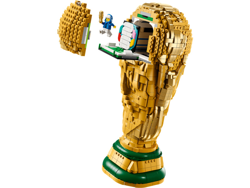 Become a creative champion with the LEGO® Editions FIFA World Cup™ Official Trophy (43020) building set for soccer fans ages 12 and up. Sports stars ages 12 and up will have lots of fun building this World Cup™ Trophy replica from LEGO bricks and discovering its authentic details. It features 2 human figures in a swirling movement holding up the Earth, the iconic globe and a plaque at the bottom naming past World Cup™ winners. The top globe of the LEGO trophy opens to reveal a FIFA World Cup 2026™ branded minifigure holding a mini trophy toy and a backdrop that shows the 2026 World Cup™ logo. The small scene can be kept inside the trophy or taken out to be displayed next to it. Once complete, the trophy makes awesome soccer decor and is a great birthday or anytime gift idea for boys, girls and sports fans of all ages. It’s also available digitally in the LEGO Builder app, where kids can track their progress and rotate their builds. Set contains 2,842 pieces.
