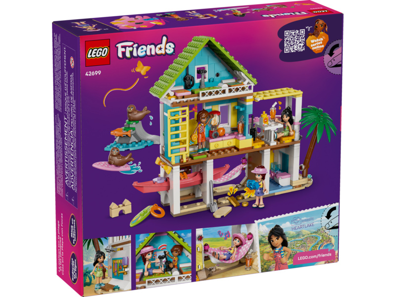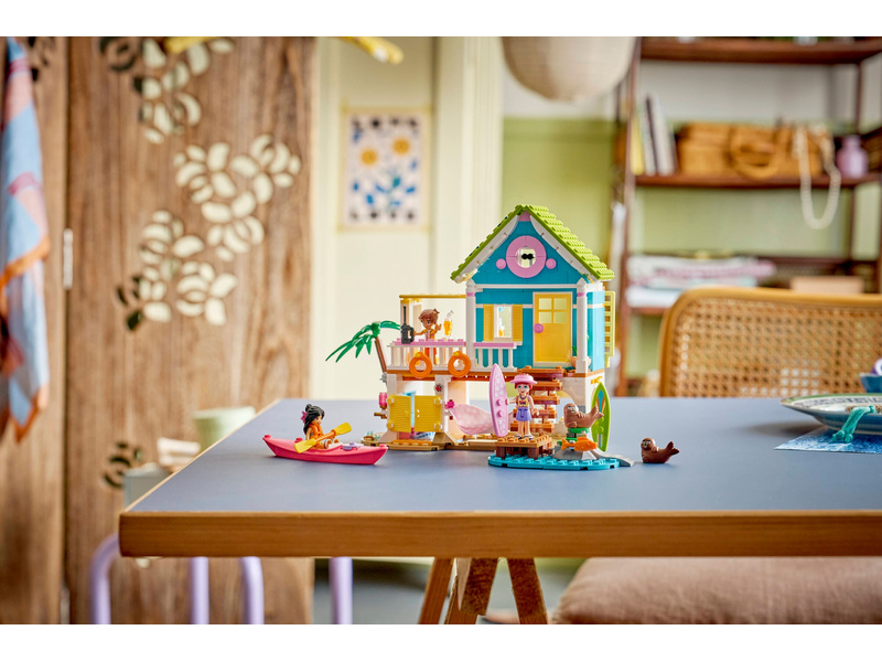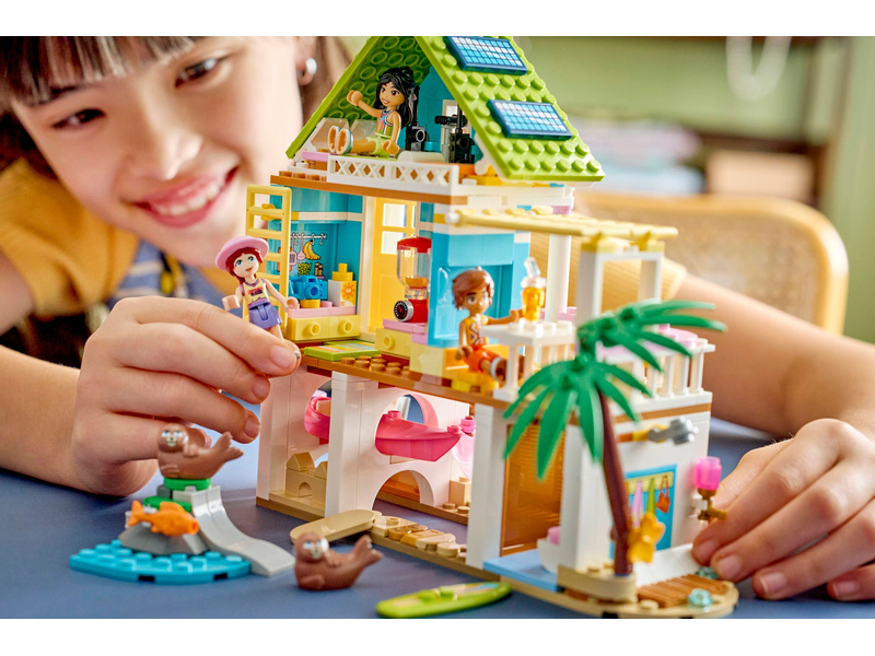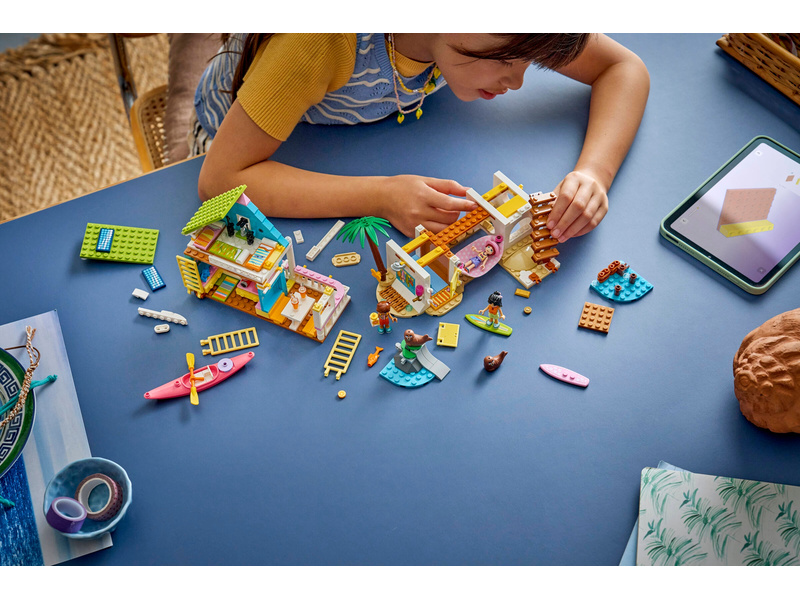 Girls and boys ages 7 and up can create vacation stories with this fun playhouse set for kids. The LEGO® Friends Beach House with Seals (42699) building kit features a beach house packed with cozy details. There’s lots to inspire imaginative play,including a smoothie maker in the kitchen, a sleeping area with 3 beds, and a cute porch with a deck and seating. The fun continues outside with a sandy area where the seals love to relax. There’s even buried treasures to find! This detailed set nurtur es open-ended play with 3 minidolls and 2 seals. Fun accessories include a surfboard, a kayak, a hammock, a life vest, walkie talkies, binoculars, sunscreen, a camera, snacks and more. This set makes a great birthday gift for girls and boys who love to use their imagination when playing with toys. With the LEGO Builder app, kids can enjoy an intuitive build where they can zoom in and rotate sets using 3D building instructions, save sets and track progress. Set contains 400 pieces.