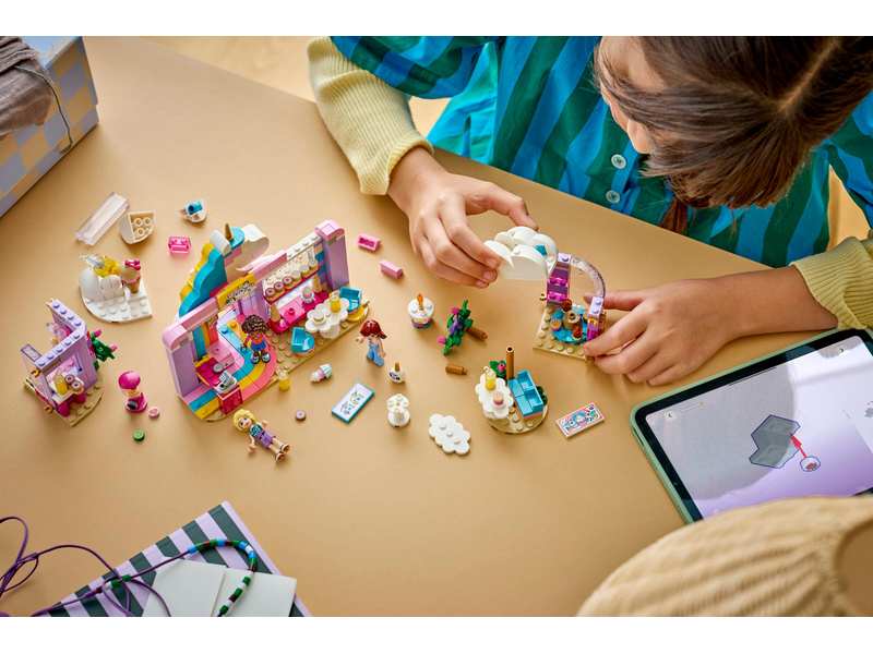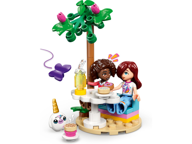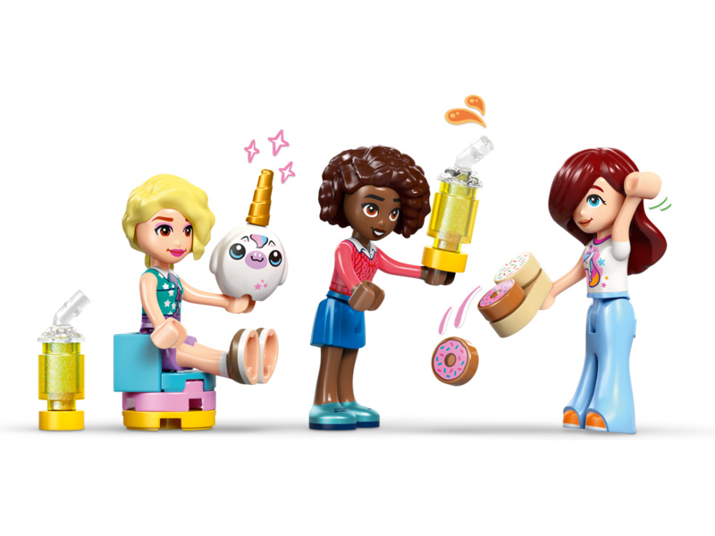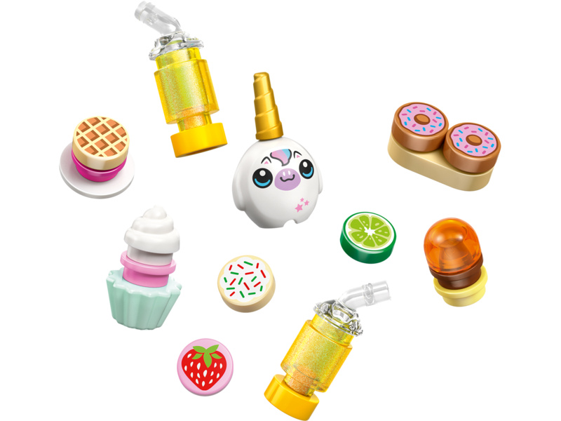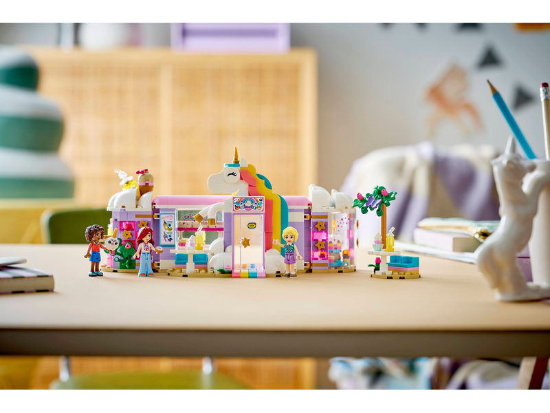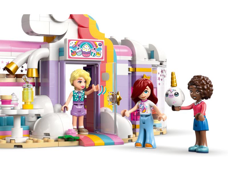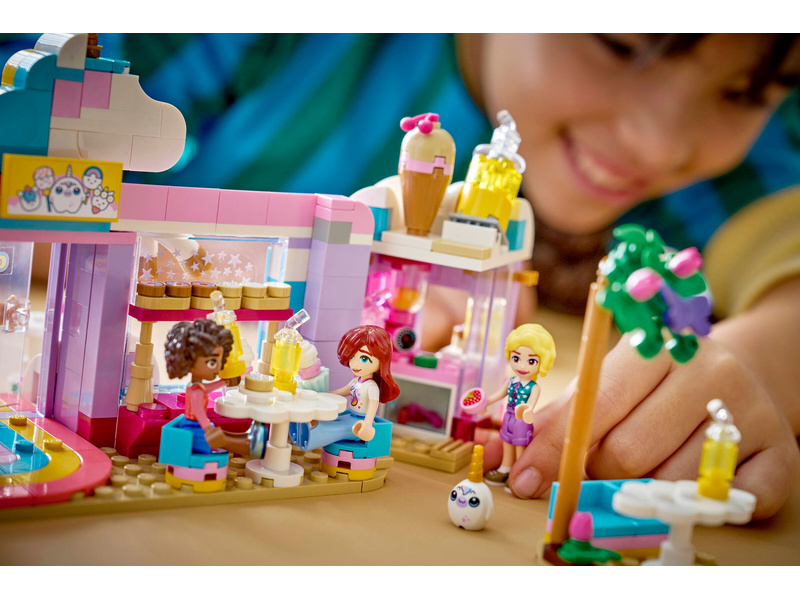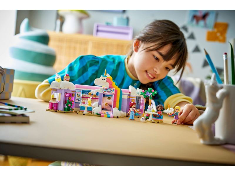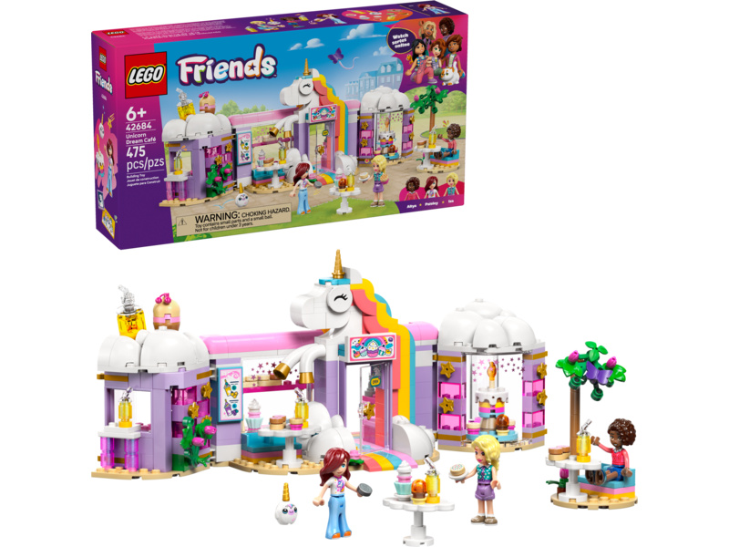 Give kids ages 6 and up a sprinkle of playtime creativity with the LEGO® Friends Unicorn Dream Café toy playset (42684). Girls and boys can play out their stories in the rainbow unicorn toy café which includes lots of cute accessories. The detailed building set encourages open-ended play with 3 minidolls, toy cakes, donuts, waffles and cookies. There are also cute cupcakes to display in the window or on the turntable. Create more story possibilities with a juice and milkshake bar, indoor and outdoor seating areas, a cash register, and a LEGO unicorn plushie accessory. Young Friends fans can enjoy creative play with café owner Iza and customers Paisley and Aliya. This set makes a great birthday gift for girls and boys who love unicorns or enjoy pretend play. With the LEGO Builder app, kids can enjoy an intuitive building adventure where they can zoom in and rotate sets using 3D building instructions, save sets and track progress. Set contains 475 pieces.