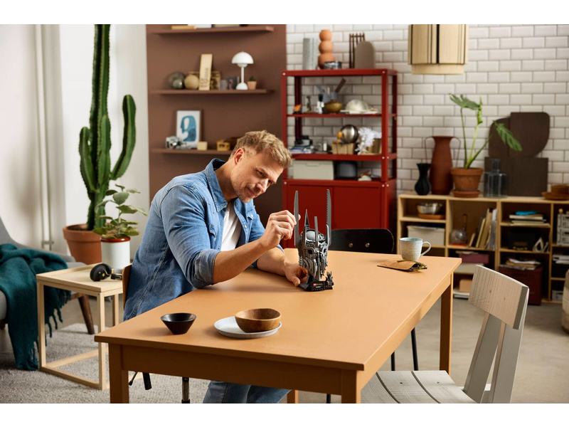 Create a fantasy decor masterpiece with the LEGO® Icons The Lord of the Rings: Sauron’s Helmet (11373) building kit for adult fans and collectors. This highly detailed, replica model captures the menacing look of the helmet of Sauron™ from the beloved movie trilogy. The set also includes a Sauron minifigure holding The One Ring, plus a sleek black display stand for both models, finished with a name plaque. This premium display model makes a super gift for fans of The Lord of the Rings movie series and a striking centerpiece for the home or office. Build smarter with the LEGO Builder app – zoom, rotate in 3D, track your progress and follow step-by-step digital instructions. Set contains 538 pieces.