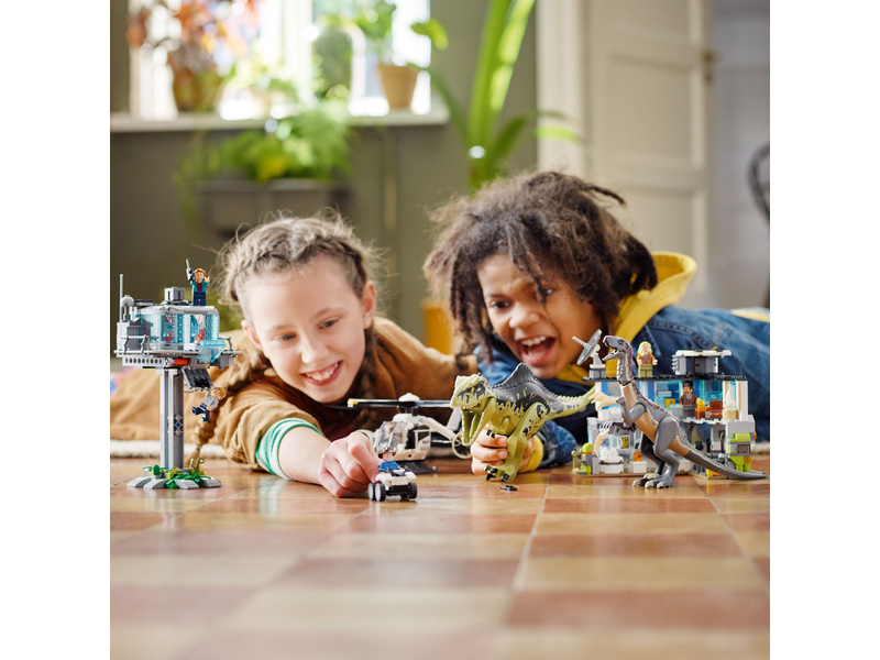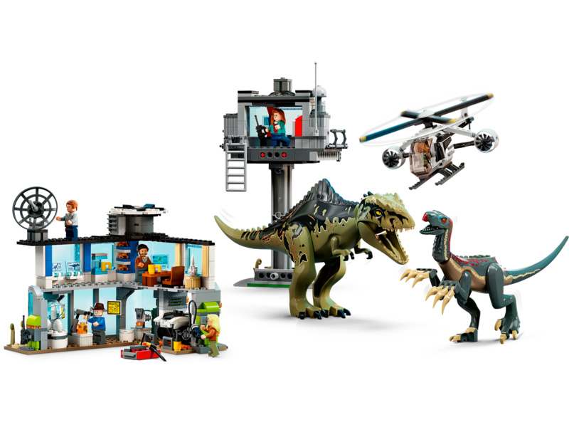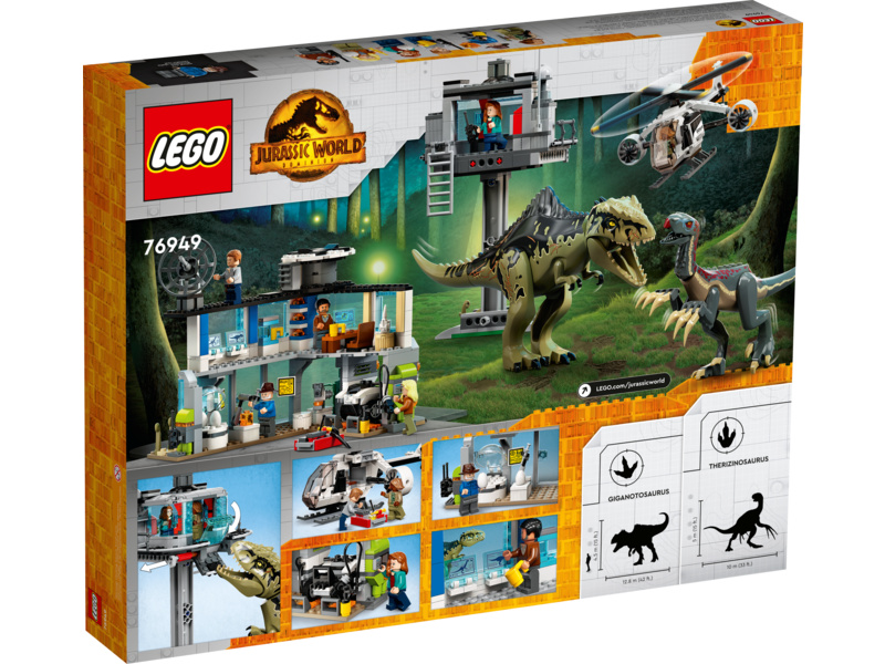 Jurassic World: Dominion fans can relive epic movie action with the awesome Giganotosaurus & Therizinosaurus Attack (76949) toy playset. A cool gift for trendsetting kids who love dinosaurs, it features 2 new-for-April-2022 posable toy dinosaur figures, a buildable HQ with a detailed lab, a garage for the all-terrain buggy, an observation tower with collapsing platform function, a helicopter with spinning rotors and a cargo compartment.