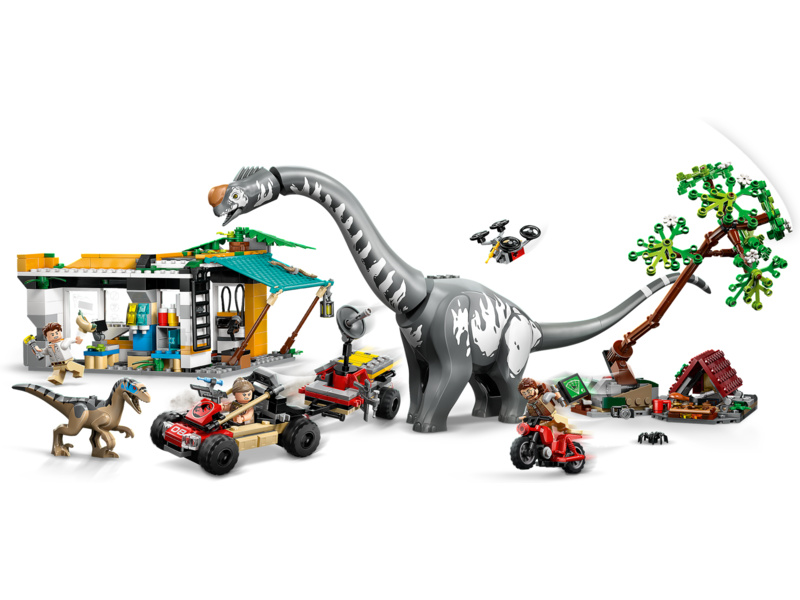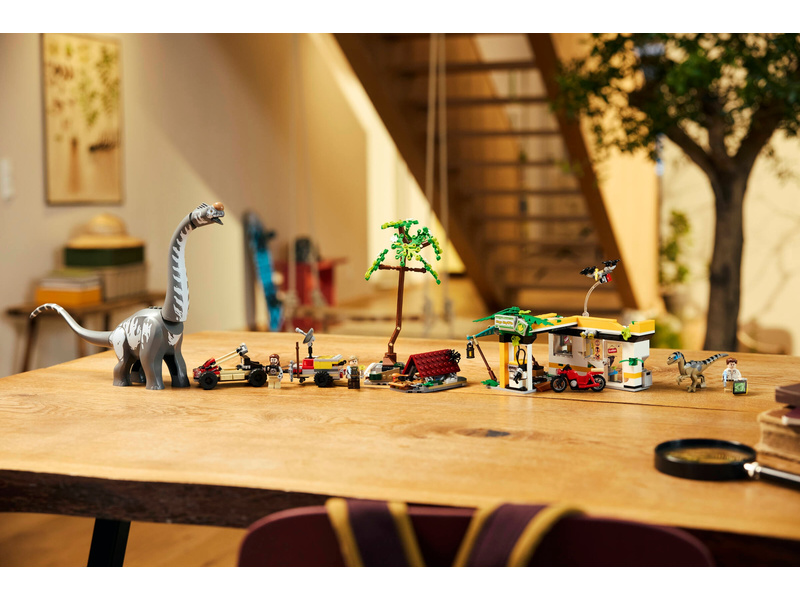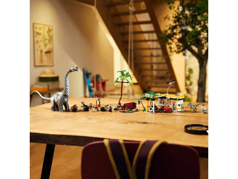 Thrilling chases and action await kids and movie fans aged 7 and up in this Raptor & Titanosaurus Tracking Mission (76973) LEGO® Jurassic World building kit. The dinosaur gift for boys and girls features molded Titanosaurus and Velociraptor toy figures and 3 minifigures: Zora Bennett, Martin Krebs and Dr. Henry Loomis. The Velociraptor has a moving jaw and the Titanosaurus has a movable neck, head and tail. The interactive toy playset includes a charging station, an off-road vehicle with a trailer, a syringe case with 3 syringes, a motorcycle, buildable drone, camp area with falling tree function and more.