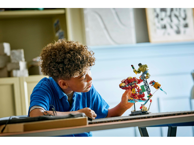 Bring Marvel Studios’ Avengers: Age of Ultron action to life with the LEGO® ǀ Marvel Epic Battle: Hulkbuster vs. The Hulk (76343) building set for boys and girls ages 9 and up. Featuring Iron Man and Hulk minifigures, plus the iconic Hulkbuster armor, this stunning building set offers kids endless opportunities for imaginative role play and creative display. Iron Man battles Hulk, with the help of his Hulkbuster armor, amid a street scene filled with debris, collapsing steel structures and a traffic light, which Hulk can use as a weapon. The Hulkbuster is fully jointed to maximize posability. With a sturdy base and nameplate, kids can use their model as room decor or detach the minifigures to create Super Hero adventures of their own. This set makes a great gift idea and, with the LEGO Builder app, kids can build with confidence – zoom, rotate in 3D and track progress with easy-to-follow digital instructions. Building set contains 413 pieces.