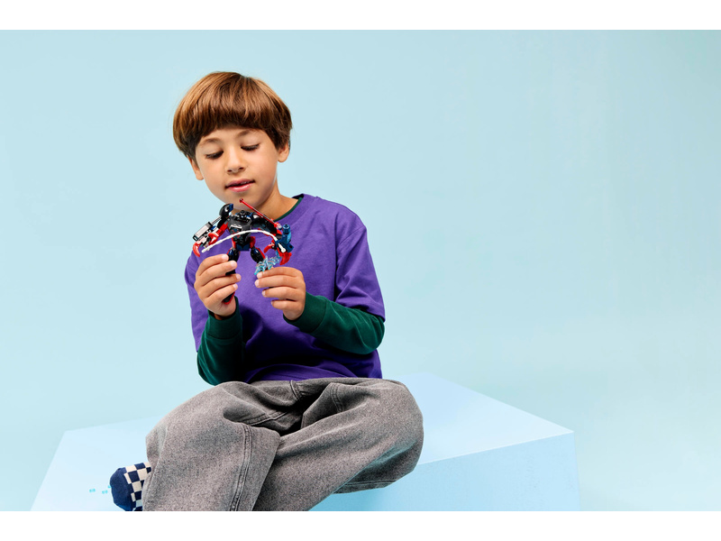 Bring supersized battle action from the Marvel movies to life with Miles Morales Mech vs. Spider-Man 2099 (76337), a Super Hero building toy gift for boys and girls ages 6 years old and up. This build-and-play kids’ toy will spark endless role play with a large, fully jointed mech, plus Spider-Man and Miles Morales minifigures. This LEGO® ǀ Marvel merchandise puts action from Marvel Studios’ Spider-Man: Across the Spider-Verse into kids’ hands with a highly posable mech that’s designed for dynamic play. On the mech’s arms are a detachable 3-stud shooter, web rope and razor web power blasts, ensuring non-stop battle action. The Spider-Man 2099 minifigure fights back with a hand-held laser beam. This set makes a great birthday gift idea for young Super Heroes, Marvel movie fans and collectors of Spider-Man merch. And, with the LEGO Builder app, kids can build with confidence – zoom, rotate in 3D and track progress with easy-to-follow digital instructions. Building set contains 135 pieces.