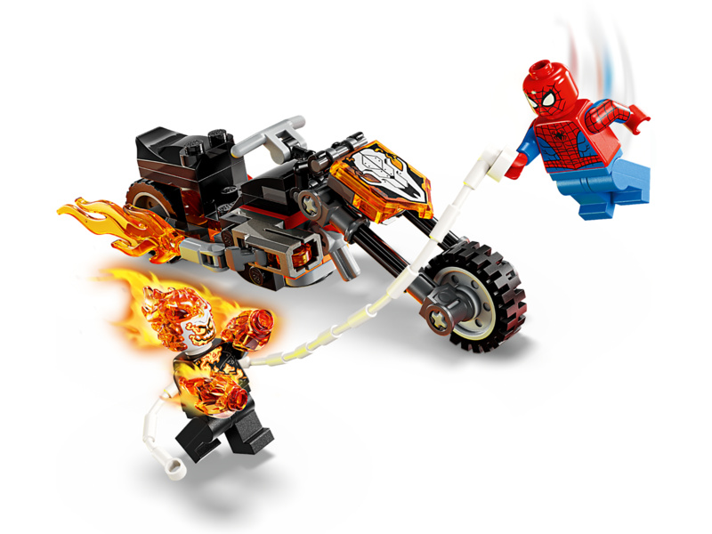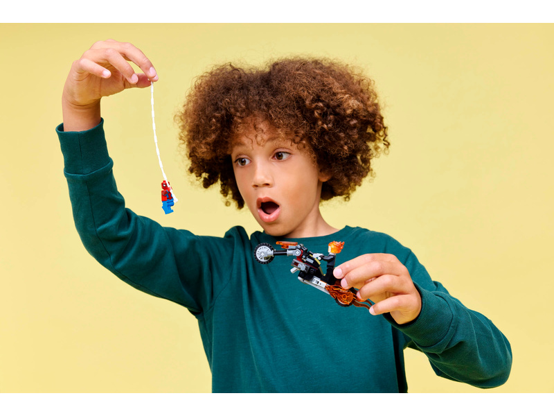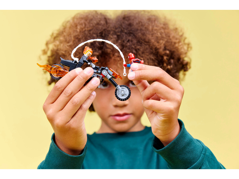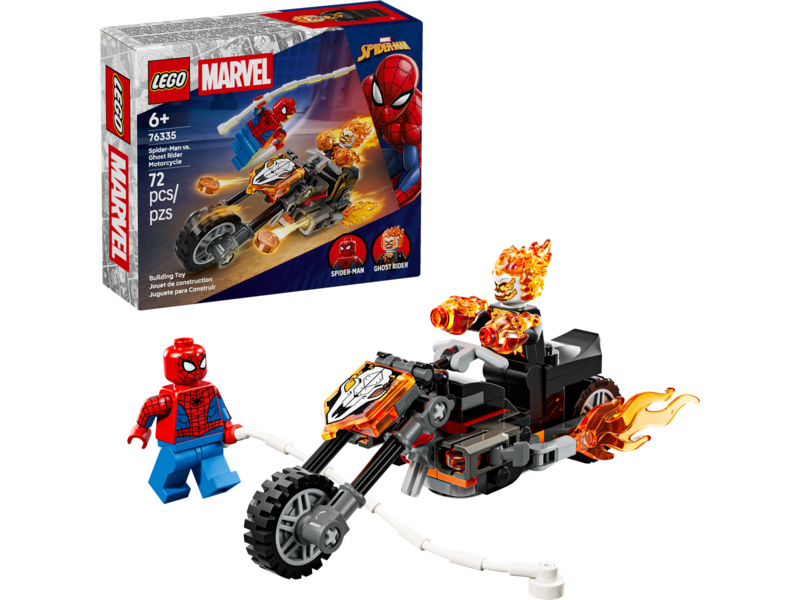 Kickstart high speed chase Super Hero action with this Spider-Man vs. Ghost Rider Motorcycle (76335) building toy for boys and girls ages 6 and up. The LEGO® ǀ Marvel building set’s battle-ready motorcycle and 2 dynamic Spider-Man and Ghost Rider minifigures fuel kids’ imaginative play. The Ghost Rider minifigure is depicted as a skeleton with flames streaming from his hands and head. His iconic motorcycle features 2 flaming tailpipes and 2 built-in stud shooters. The Spider-Man minifigure’s web-rope attaches to the motorcycle, offering endless role play possibilities as the characters battle on and off the high-octane vehicle. This building set makes a great gift idea for the birthdays of young Super Heroes, LEGO builders and fans of collectible Spider-Man merchandise. And, with the LEGO Builder app, kids can build with confidence – zoom, rotate in 3D and track progress with easy-to-follow digital instructions. Building set contains 72 pieces.