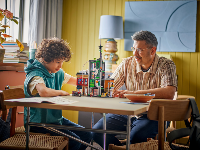 The street scene comprises 3 separate buildings: Miles Morales’s apartment with a jewellery shop underneath, the Oscorp building, and Venom’s apartment with a newsagent below. Each room is furnished with relevant equipment and accessories. 8 LEGO minifigures from the Marvel films ensure endless web-slinging action: Spider-Man, Spider-Woman, Miles Morales with his motorbike, Eddie Brock, Ghost-Spider, Norman Osborn, Kraven the Hunter and Green Goblin with his glider. Transparent sticks allow kids to position and pose characters with realistic ease. Build Together on the LEGO Builder app lets friends and family share the creative fun. Contains 808 pieces.