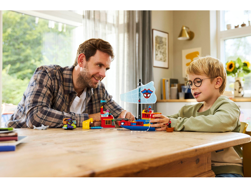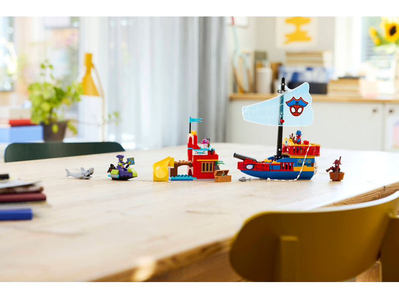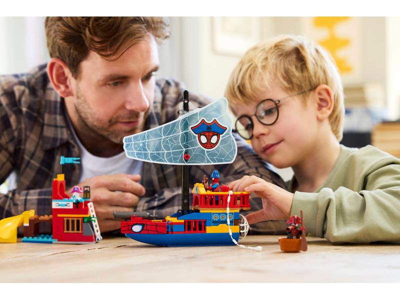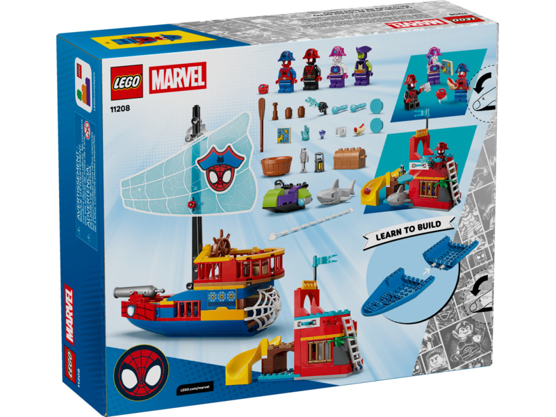 Set sail for imaginative play aboard the Team Spidey Pirate Ship (11208) creative building toy with Spidey, Green Goblin, Ghost-Spider and Miles "Spin" Morales. This building set offers a great way for boys, girls and kids ages 4 years old and up to develop skills as they explore fun at sea and on Spider Island. This feature-packed Spidey building toy includes a pirate ship, Spider Island with a slide, Green Goblin’s ship and a smaller boat. There’s a cannon on the pirate ship, a disc shooter on the island and shooters on Green Goblin’s ship. Spidey’s web rope can be used to catch a fish, a treasure chest or Goblin's ship. This Spider-Man gift for fans of Spidey And His Amazing Friends comes with colorful pictorial instructions, a Starter Brick and separate bags containing 1 buildable model per bag to make creative construction fast and fun. And, with the LEGO® Builder app, kids can zoom, rotate in 3D and track progress with simple digital instructions. Building set contains 201 pieces.