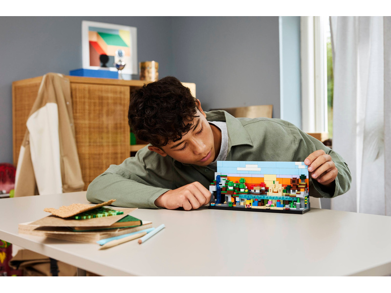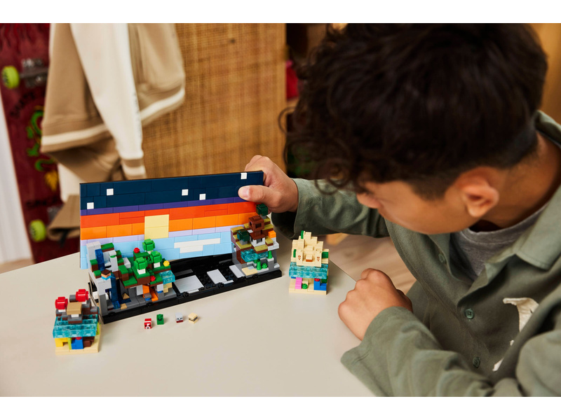 Celebrate iconic Minecraft® decor with the LEGO® Minecraft Mini Biomes (21589) building set for boys and girls 12 years old and up. Minecraft players can put their passion for the game on display for all to admire with 5 toy biomes and 5 microfigures: Steve, Creeper™, mooshroom, husk and a pillager. The LEGO Minecraft set has 5 removable biomes: mountain – with dripstone cave, amethyst geode and waterfall; flower forest – with a cave, lava and gold; mushroom fields – with a coral reef, shipwreck, 2 red mushroom trees and a brown mushroom; desert – with a temple, coral reef, ocean, cacti and treasure chest; and savanna – with a pillager outpost, lush cave, acacia trees, pumpkin, lava and beach. Also includes a reversable (day/night-time) backdrop. This set makes a great gaming gift for Minecraft players and LEGO fans. And, with the LEGO Builder app, kids can build with confidence – zoom, rotate in 3D and track progress with easy-to-follow digital instructions. Set contains 797 pieces.