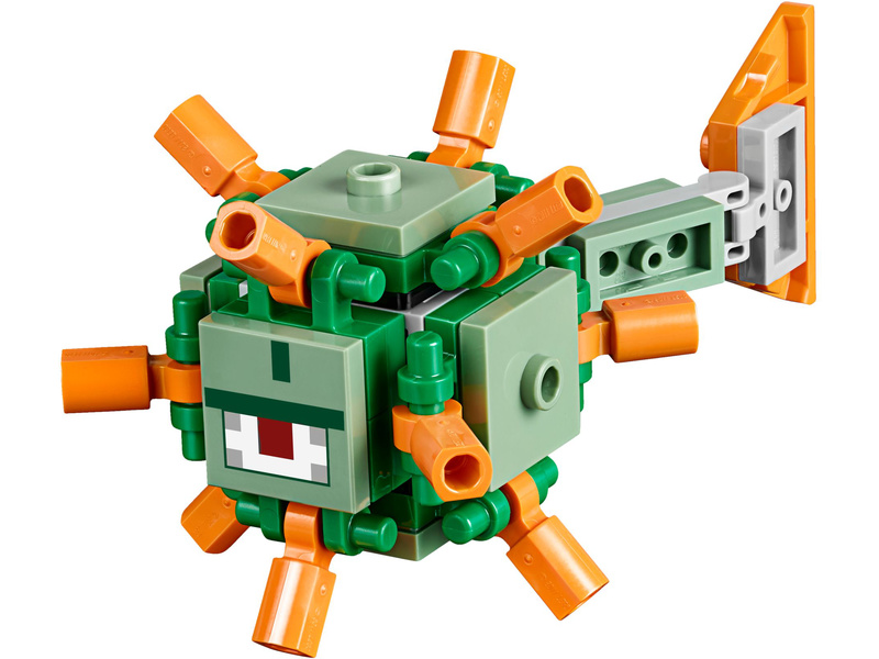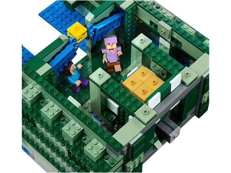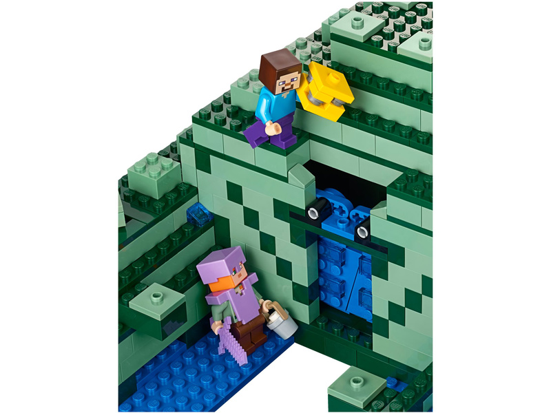 Head for the depths of the Minecraft™ sea to discover the Ocean Monument. Battle the elder guardian with spring-loaded shooter, activate the dry sponge function to enter the monument and locate the lever to open the treasure chamber full of golden blocks. Enjoy hands-on Minecraft adventures featuring your favorite characters and objects with this easy-to-reconfigure LEGO® Minecraft set—designed for young fans of the highly successful sandbox video game. Includes Steve and Alex minifigures, plus squid, guardian and elder guardian figures.