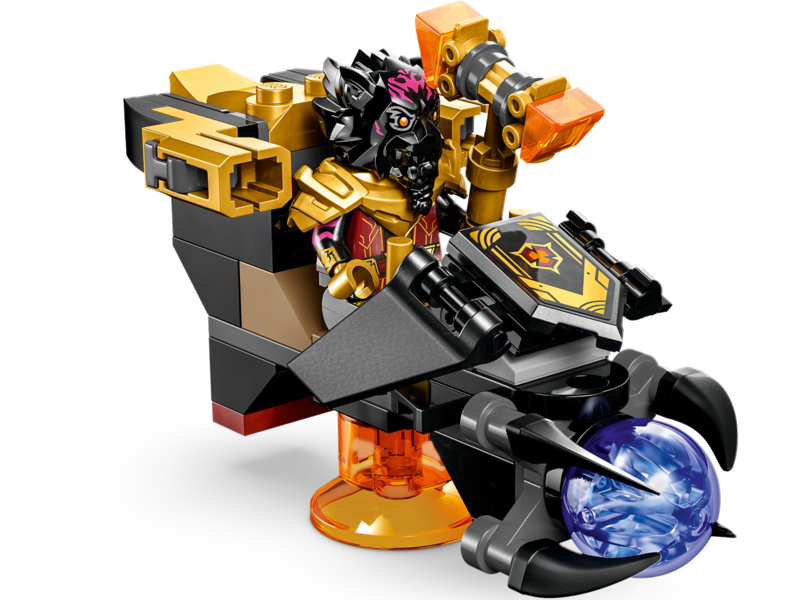 This ninja dragon playset comes with 5 minifigures: Kai and Lloyd, each armed with 2 katanas, Wyldfyre with her fireball fist, Imperium Claw Hunter with an Imperium sword and Lord Ras with a golden hammer and a battle hovercraft. There are 4 more dragon power elements in different colors and 3 dragon energy cores for kids to collect in other NINJAGO sets.