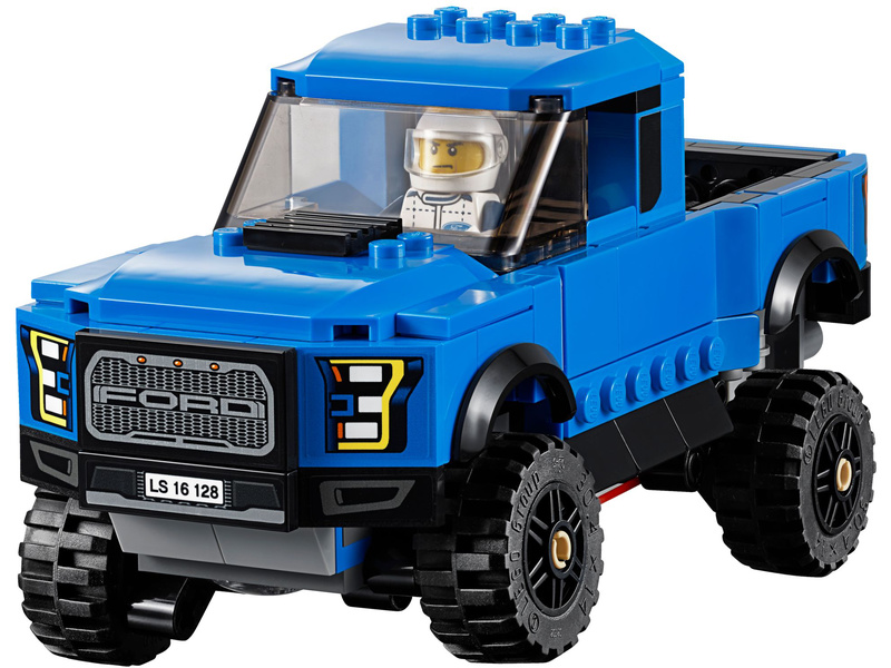 - The Ford F-150 Raptor truck features a driver's cabin with removable windshield, big wheels, suspension, authentic Ford logo and headlight stickers, and a detachable trailer.