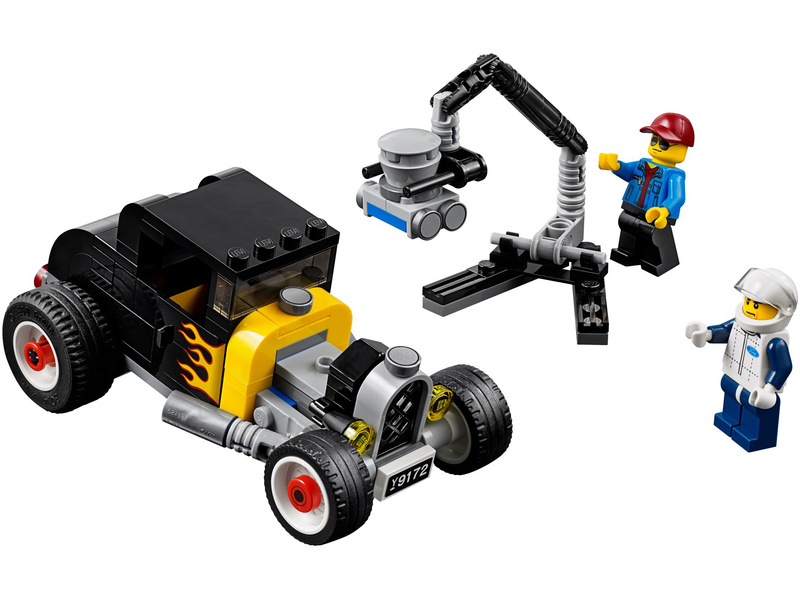 - Includes 4 minifigures: a Hot Rod racing driver, racing driver, mechanic and a race official.